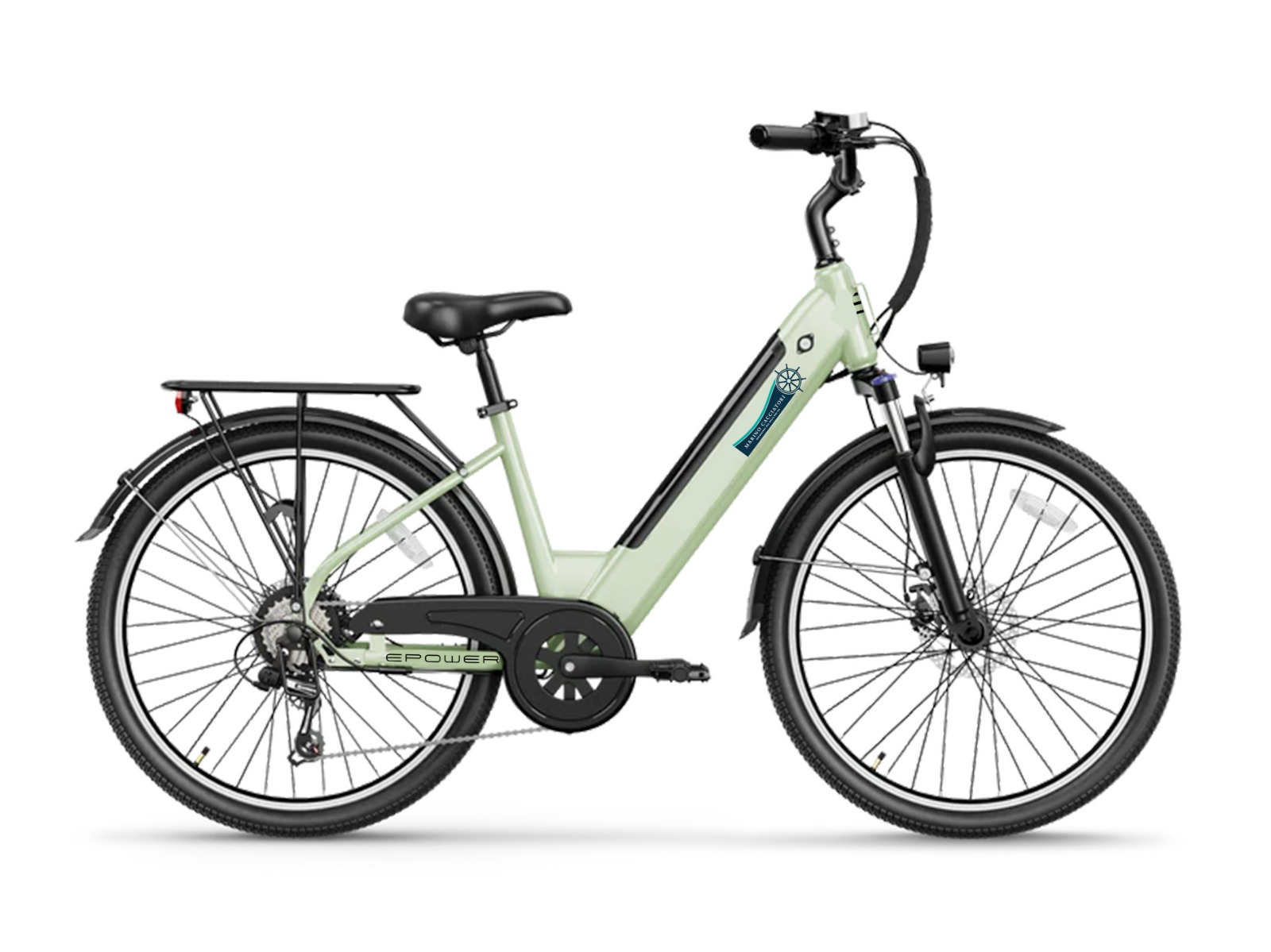 Borsa frigo con all'interno un panino che puoi scegliere da e-BikeCafè una bibita dolce una bottiglia di acqua congelata che ti tiene tutto al fresco un dolce ed una bibita dolce, la borsa rimane per sempre a te anke a fine noleggio.Fodera da sella