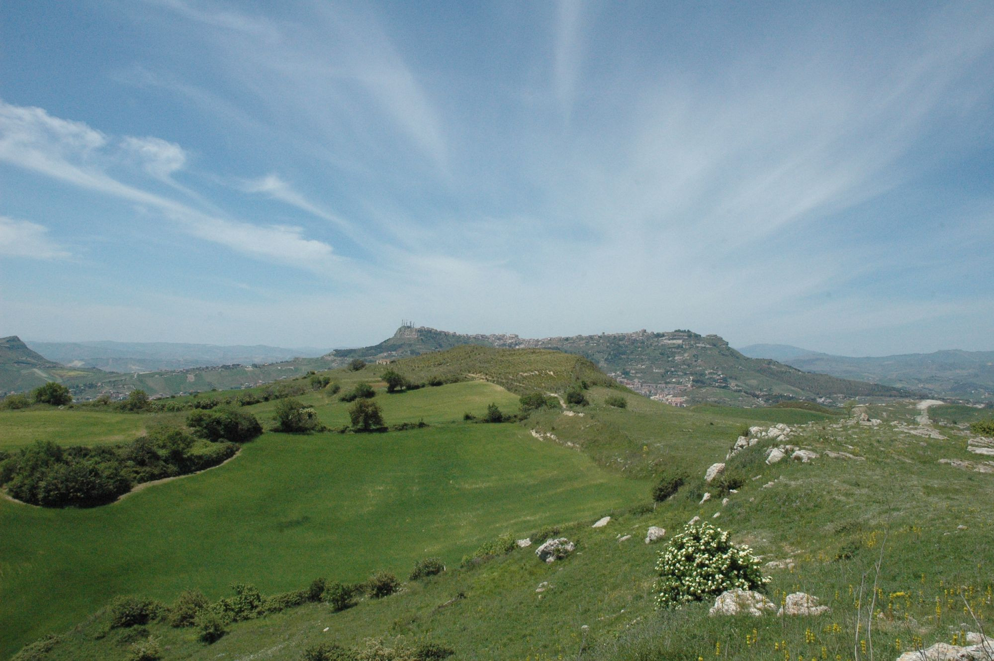 Intorno antichi frantoi per le uve, resti di forni per la fusione del rame e del bronzo, tombe a camera e, a Nord, il profilo di Enna con l'altra area sacra della Rocca di Cerere.