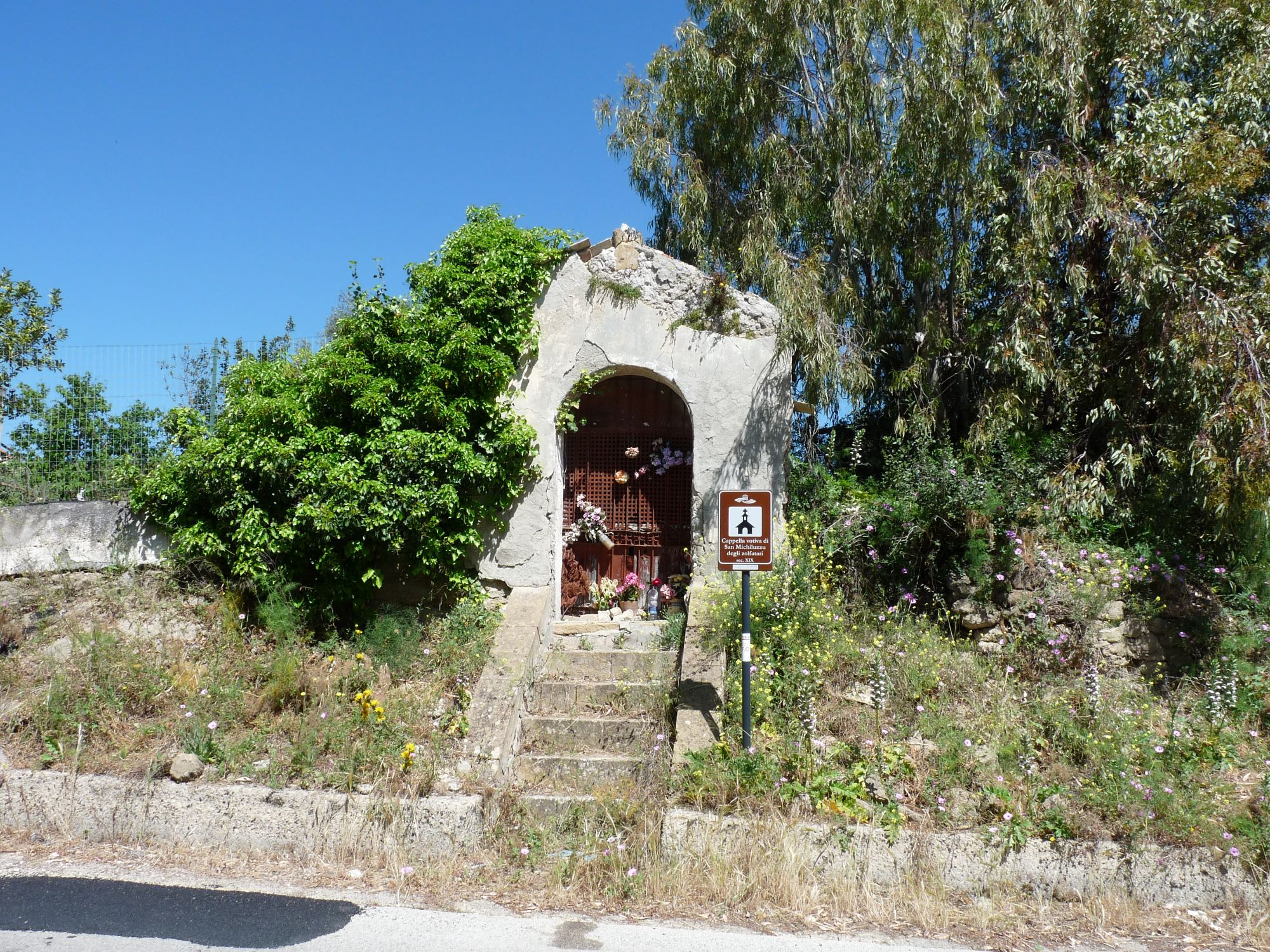Il nostro itinerario inizia proprio dalla via Xiboli, da dove parte il percorso minerario alla scoperta delle quattro Cappelle votive. Si inizia dalla Cappella votiva dedicata alle “Anime del Purgatorio”, utilizzata verso la fine dell'Ottocento come camera ardente per i morti nelle miniere, per poi passare alla Cappella votiva dedicata alla “Sacra Famiglia”. Successivamente, si visita la Cappella votiva dedicata alla “Madonna dei Peccatori o del Perdono”, particolarmente cara ai minatori che pregavano per evitare disastri e a Pasqua offrivano verdura o frumento germogliato. Infine, si arriva alla Cappella votiva dedicata a “San Micheluzzo di Pirreri”, dove i minatori, per la festa di San Michele, donavano lumi di zolfo da accendere durante le preghiere, mentre il giorno di Natale offrivano sangue di maiale, che consumavano dopo aver recitato preghiere a San Michele.