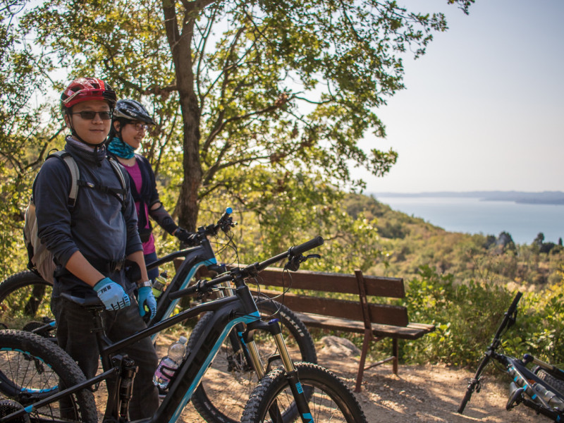 In questo itinerario scopriremo addirittura due luoghi altamente panoramici che non sembrano neppure essere così vicini: quello verso nord, dove il lago ci rammenta un fiordo, e quello verso sud, dove è indistinguibile la differenza tra il nostro lago ed un paesaggio di mare. Partendo dalle sponde del Lago di Garda ci porteremo, risalendo agevolmente antiche mulattiere grazie alle E-MTB Focus Jam2 Plus LTD, alla località Crero situata a circa 200m di quota. Da qui si proseguirà poi verso Albisano per raggiungere il belvedere a quota 300m attraverso la forestale sterrata “del Pellegrino”, immersa nella natura della fascia climatica mediterranea del Monte Baldo.