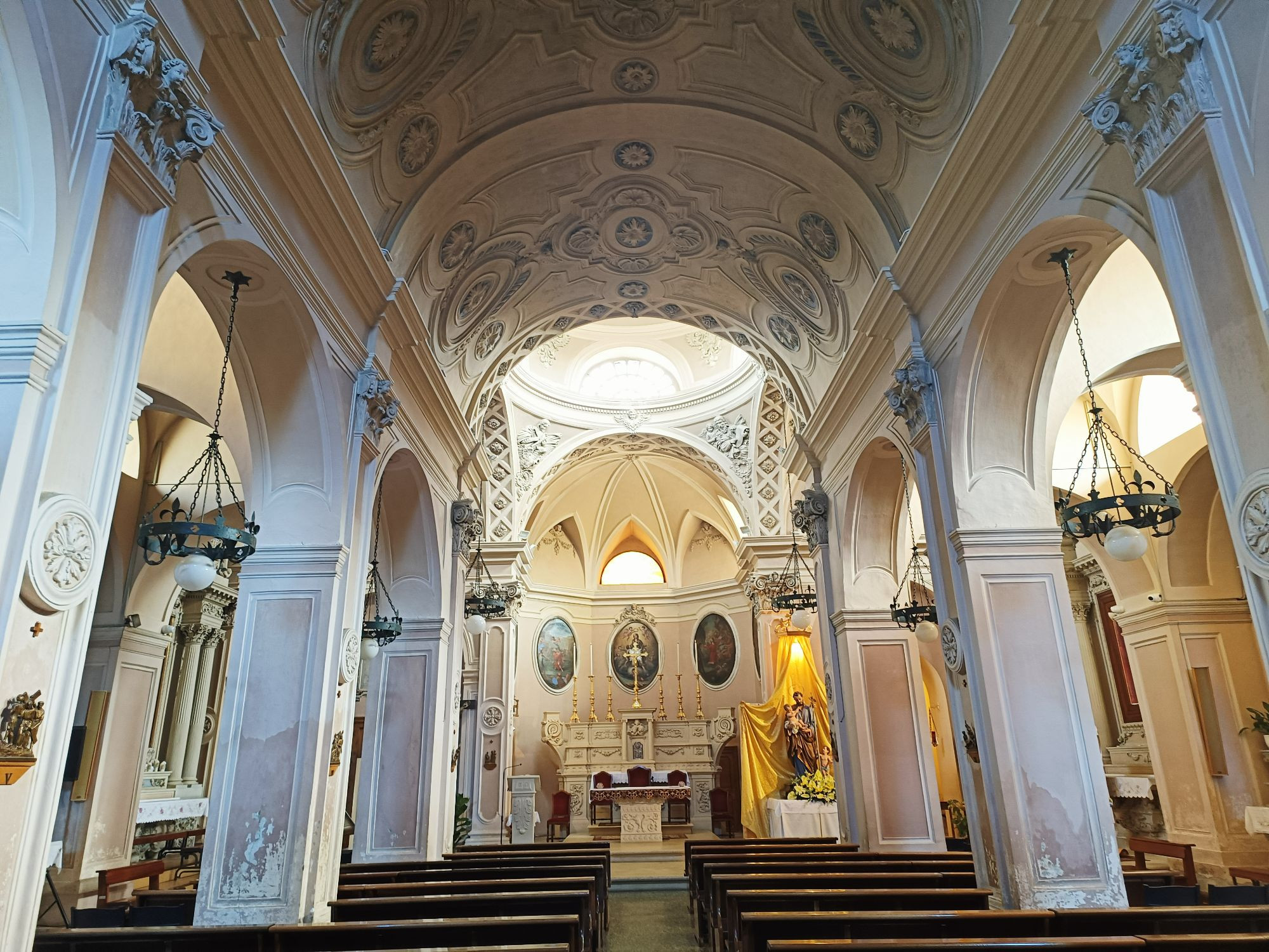 Edificata nel 1455, ha una storia ricca di intrecci, di restauri e ampliamenti che ne hanno modellato l'aspetto attuale, creando un'armoniosa fusione di stili. Dalla pianta quadrata originaria si è passati alla croce latina nel XIX secolo, conservando solo la navata centrale dell'impianto originale. La facciata si apre su tre portali, invitando il visitatore ad entrare in un'atmosfera di quiete e sacralitàL'interno, con le sue tre navate, custodisce un'eccellente collezione di opere d'arte. Altari lignei, tele, sculture raccontano storie di fede e devozione. La cupola, svettante all'incrocio del transetto, illumina l'ambiente con la sua luce soffusa, mentre i pennacchi, decorati con i Quattro Evangelisti, completano l'armonia dell'insieme. Da notare i capitelli dei pilastri della navata centrale, perché sono gli originali della struttura quattrocentesca.