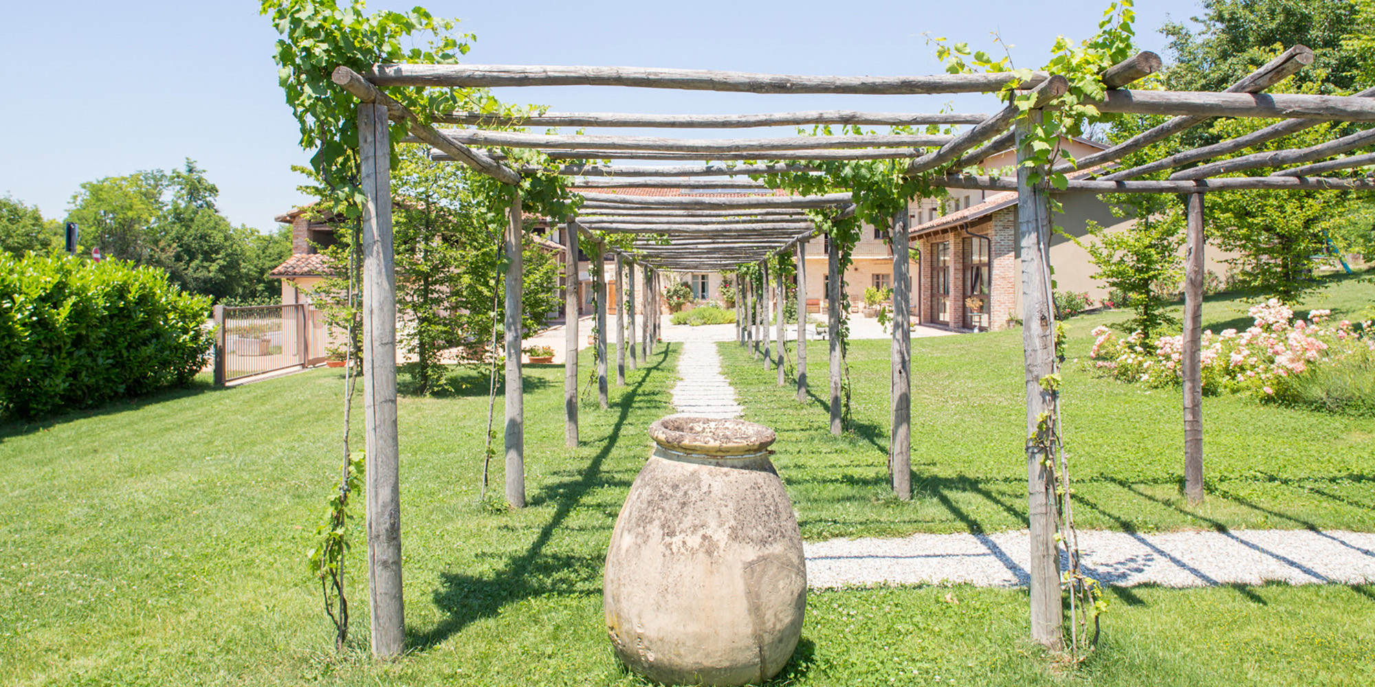 Il muro e la linea continua di lauri che racchiudono il cortile interno riservano un rifugio di pace e tranquillità dove assaporare le prelibate specialità del nostro territorio e godere il tepore del sole nell’ampio cortile attorno al giardino delle erbe aromatiche oppure al fresco sotto il portico.