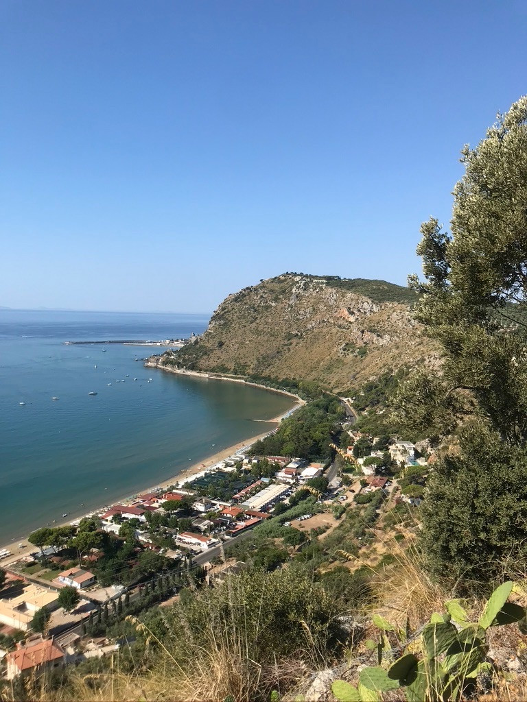 vista mozzafiato del golfo di sperlonga su un asplendida terrazza lungo gli antichi basolati calcarei dell'appia antica