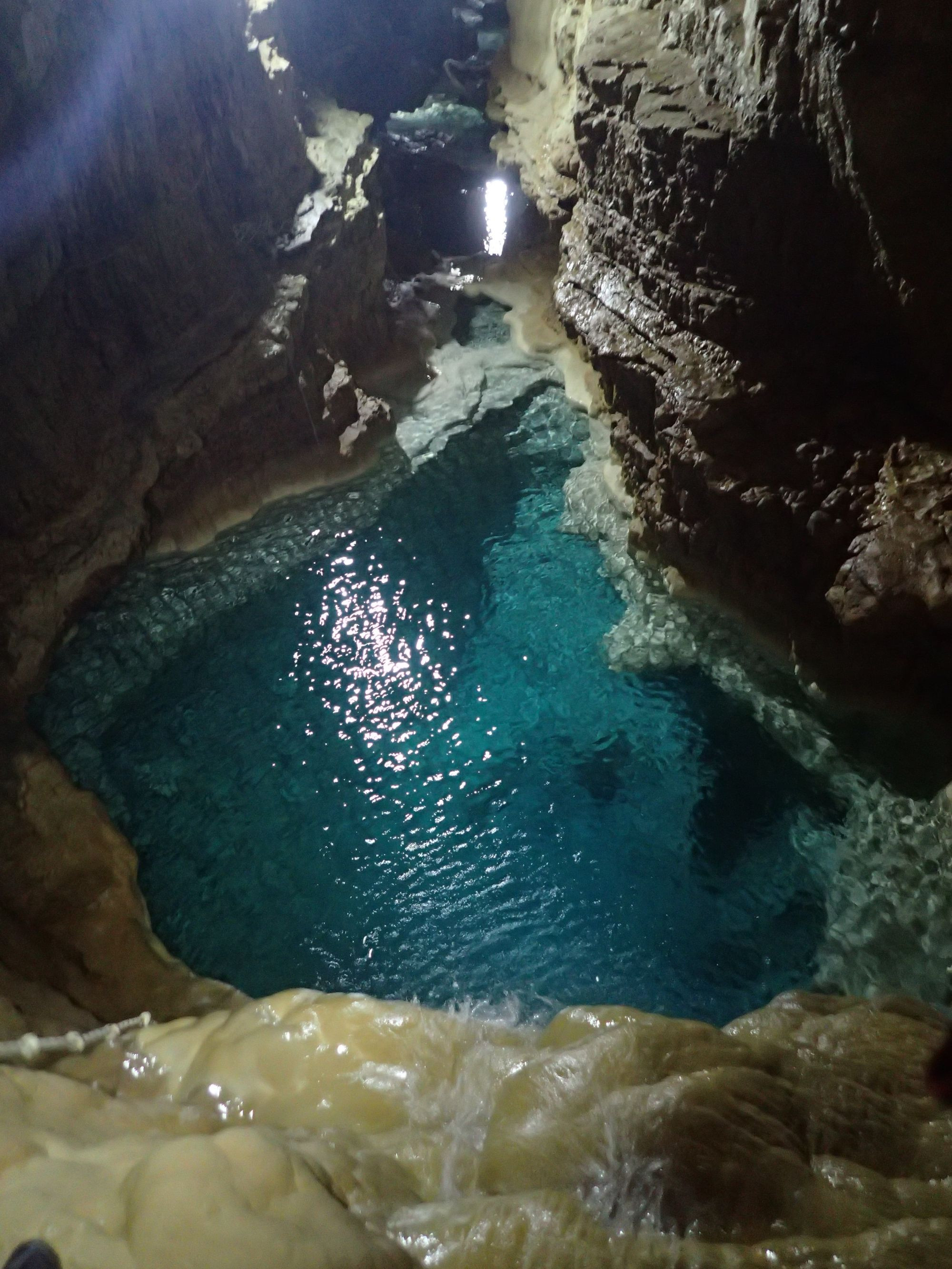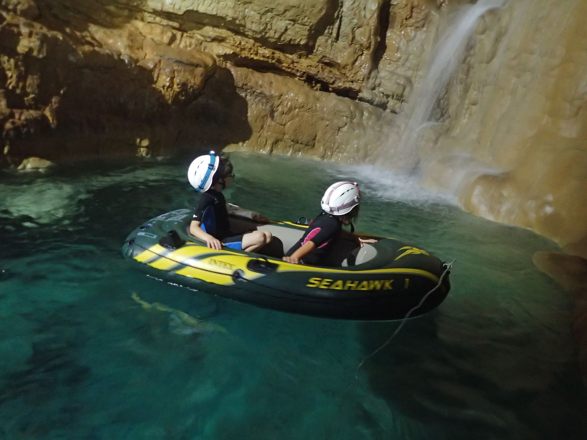 Dopo la sosta in sella alla bici si percorreranno gli ultimi 4 km fino a tornare al punto noleggio presso le Grotte di Falvaterra dove potrete visitare il complesso ipogeo che si collega a quello delle Grotte di Pastena: questo complesso è caratterizzato da aree attive ricche di acqua con cascate, rapide, forre e laghetti e avrete la possibilità di scoprirlo sia con una visita turistica classica (grazie a una passerella interna) sia con una visita speleoturistica camminando e nuotando direttamente all'interno del cristallino corso d'acqua e attraversando laghetti e cascate.