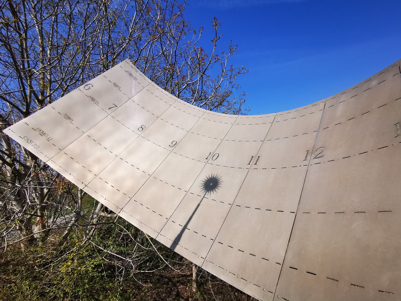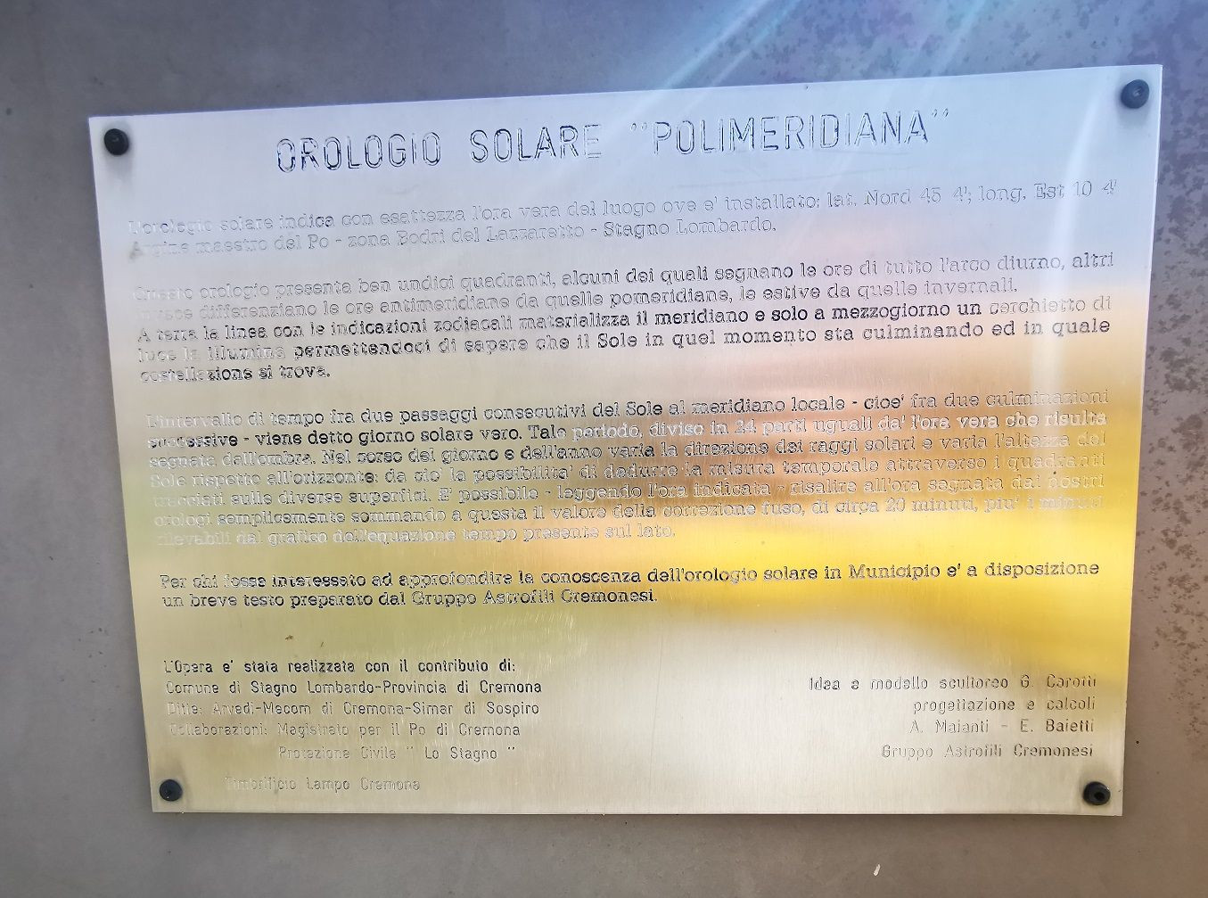 Sul lato della polimeridiana c'è una targa con le spiegazioni delle funzioni astronomiche per la lettura corretta del segno lasciato dal sole.