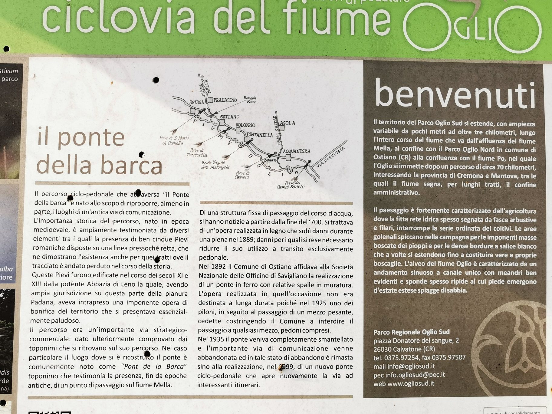Il Ponte della barca", nel territorio del Comune di Ostiano, è situato lungo i luoghi di un'antica via di comunicazione. L'importanza storica del percorso, nato in epoca medioevale, è ampiamente testimoniata da diversi elementi tra i quali la presenza di ben cinque Pievi romaniche.