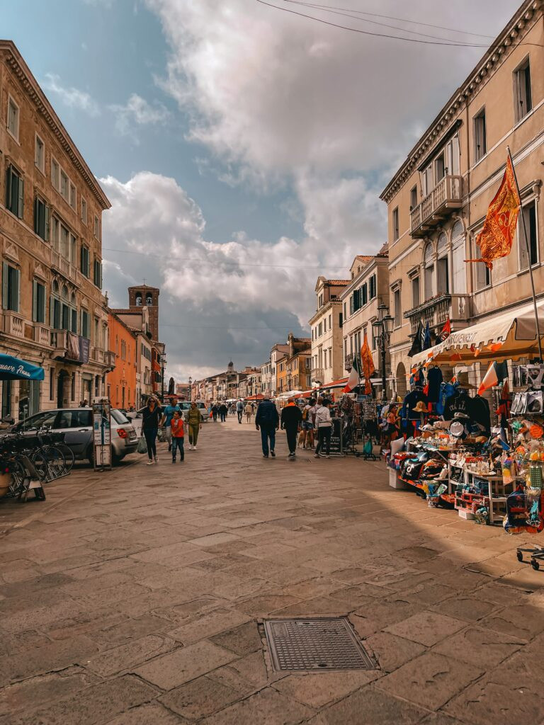 È la piazza-strada di Chioggia, lunga 830 metri da porta Garibaldi all’affaccio in Laguna, da sempre centro di animazione, socialità, attività commerciali e servizi. Il corso, ricco di edifici porticati sul lato di ponente, assunse l’attuale importanza prospettica tra ’600 e ’700, quando vi si orientarono le fronti di vari palazzi. Fra questi il vasto e neoclassico Palazzo comunale (all’interno, tavola del 1437 attribuita a Jacobello del Fiore). Uno slargo, con al fondo la settecentesca chiesa dei Filippini, lo divide dalla chiesa di SS. Trinità, o Trinità dei Rossi, ricostruita da Andrea Tirali nel 1703; un ciclo pittorico tardomanierista (1599-1606) e affreschi di Palma il Giovane ornano il retrostante oratorio dei Battuti. Poco oltre, appena arretrato sul corso, s’incontra il portico in pietra d’Istria del Granaio, basso edificio del 1322 (tra i più antichi della città), restaurato nell’800; nel tabernacolo gotico in facciata, la Madonna col Bambino è attribuita a Jacopo Sansovino.