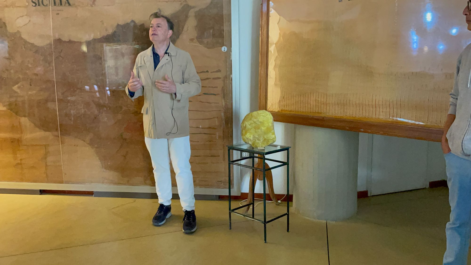 Ammonite fossile di grandi dimensioni, direttamente dalla Germania; Aragonite; Autunite a cui si ispira la kryptonite di Superman; Gesso a ciuffi di cristallo aciculari di grandi dimensioni, proveniente da Cianciana (AG); Geode di quarzo ametista con calcite stalattitica radiale e con coppia di aggregati colonnari a morfologia prismatica di grandi dimensioni; Meteorite donato dal Negus d’Etiopia, come ringraziamento alla città di Caltanissetta che aveva ospitato il figlio per un periodo di studio; Elephas Mnaidriensis, mandibola dell'ultima specie di elefante vissuta in Sicilia circa 200.000 anni fa, proveniente dalla Grotta del coniglio sito nella Baida Palermo.