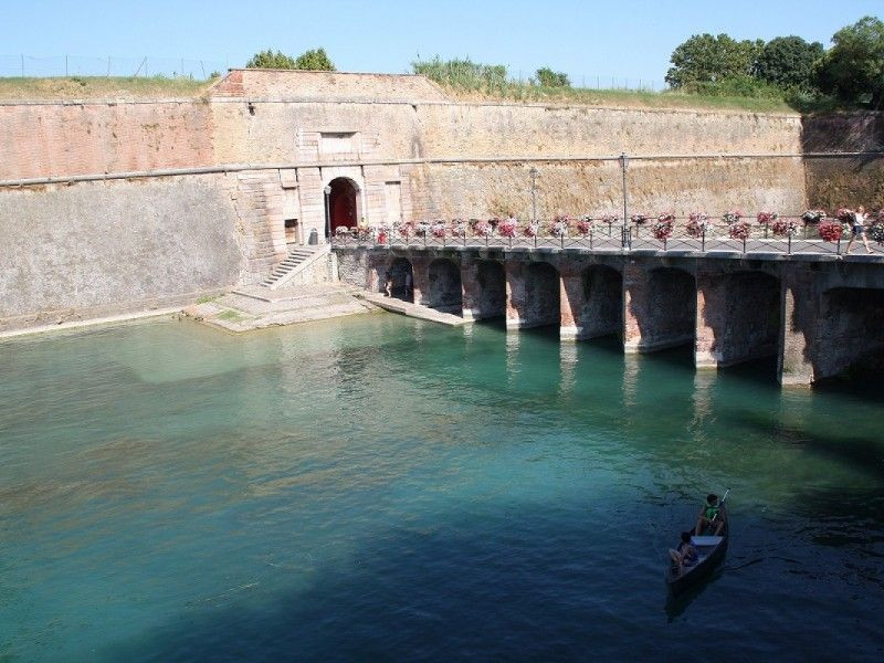 Porta Brescia, denominata anche porta di campagna, era l’accesso alla città fortificata di Peschiera. La sua architettura, molto semplice e compatta, è tipica delle costruzioni a carattere difensivo militare. Già da qui si osserva l’imponente bastione cinquecentesco, protetto dal fossato, che insieme agli altri tre canali, circondano la fortezza. Da qui, passato il ponte, progettato da Anton Maria Lorna nel 1760, si percorre il centro storico del paese, raggiungendo Piazza San marco.