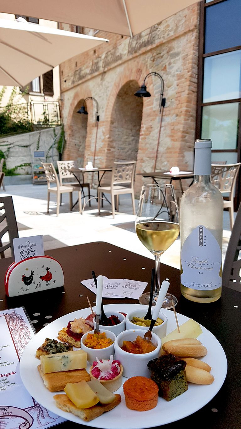 Per rendere la nostra proposta flessibile l'orario è continuato dalle colazioni fino alle merende del pomeriggio passando attraverso aperitivi gourmet e pranzo. I piatti tipici della tradizione sono affiancati da cibi gustosi e sani come le nostre insalatone di stagione e i fermentati, il tutto innaffiato dai pregiati vini della cantina storica di Barolo Germano Angelo oppure dalle bevande preparate da noi con lo sciroppo di rose o di sambuco o come il succo di cotogne e rosmarino o la dissetante tisana servita fredda al limone e salvia.