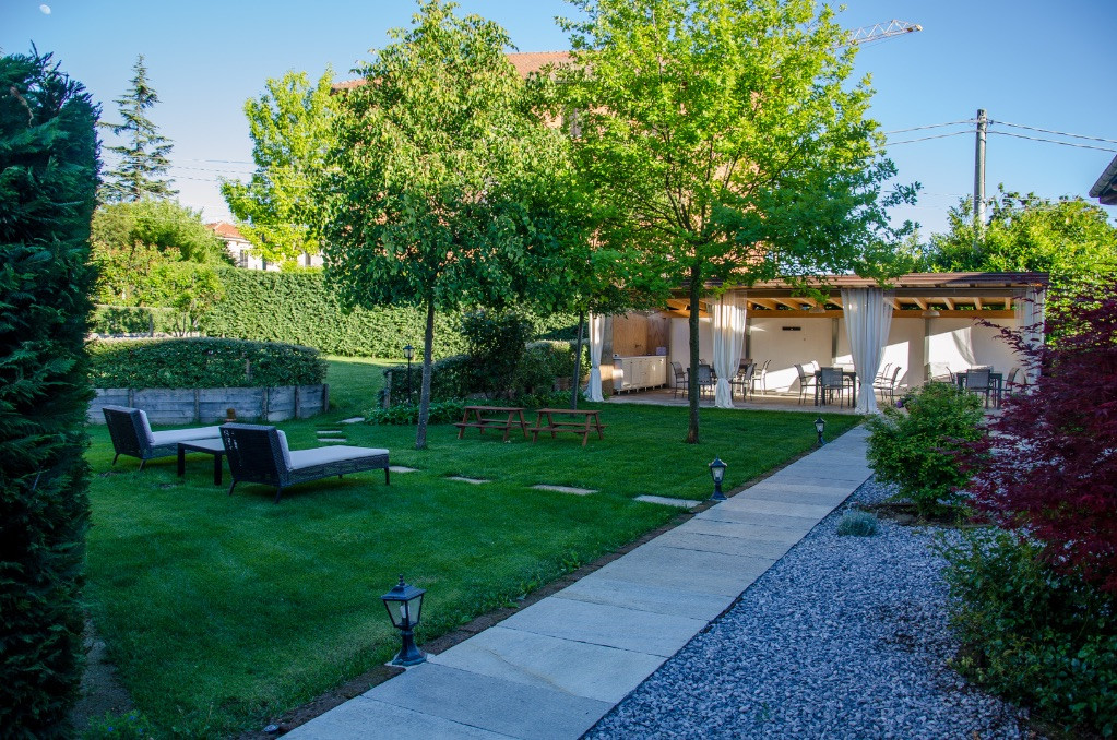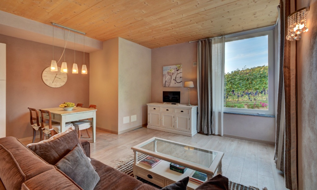 La Rosa Gialla, ideata da Gianni e Marina, è una struttura in bioedilizia in Barolo, cuore delle Langhe, a ridosso dell'abitazione dei proprietari per poter essere più vicini e disponibili verso i clienti. Le due strutture affacciate sulle montagne del Monviso e sui vigneti del Barolo, sono collegate da un tipico portico in legno, un grande giardino che racchiude una zona solarium, barbecue e tavoli per un piacevole ristoro, un'ampia terrazza, e infine, circondata dalle nostre vigne: la piscina. La prima casa, costruita in modo tradizionale, dove vive la famiglia, mette a disposizione tre appartamenti con soffitti in legno con travi a vista, finemente arredati e con panorama incantevole. La seconda casa costruita in bioarchitettura con impianto fotovoltaico è composta da 4 appartamenti, caldi, accoglienti, eleganti e confortevoli, con soffitti in legno a vista e grandi vetrate affacciate sul vigneto, sul giardino, sulla piscina e sul Monviso. Il tutto immerso in un grande giardino con angolo grill e gazebo attrezzati con tavoli e sedie, ai bordi di un vigneto, e un grande terrazzo che si affaccia sul verde delle montagne e l'azzurro della piscina, a disposizione degli ospiti per vivere il fascino dell'ondulato ritmo delle langhe. Gli spazi comuni sono nati per favorire la convivialità e per trascorrere piacevoli momenti in allegria condividendo i piaceri della tavola.