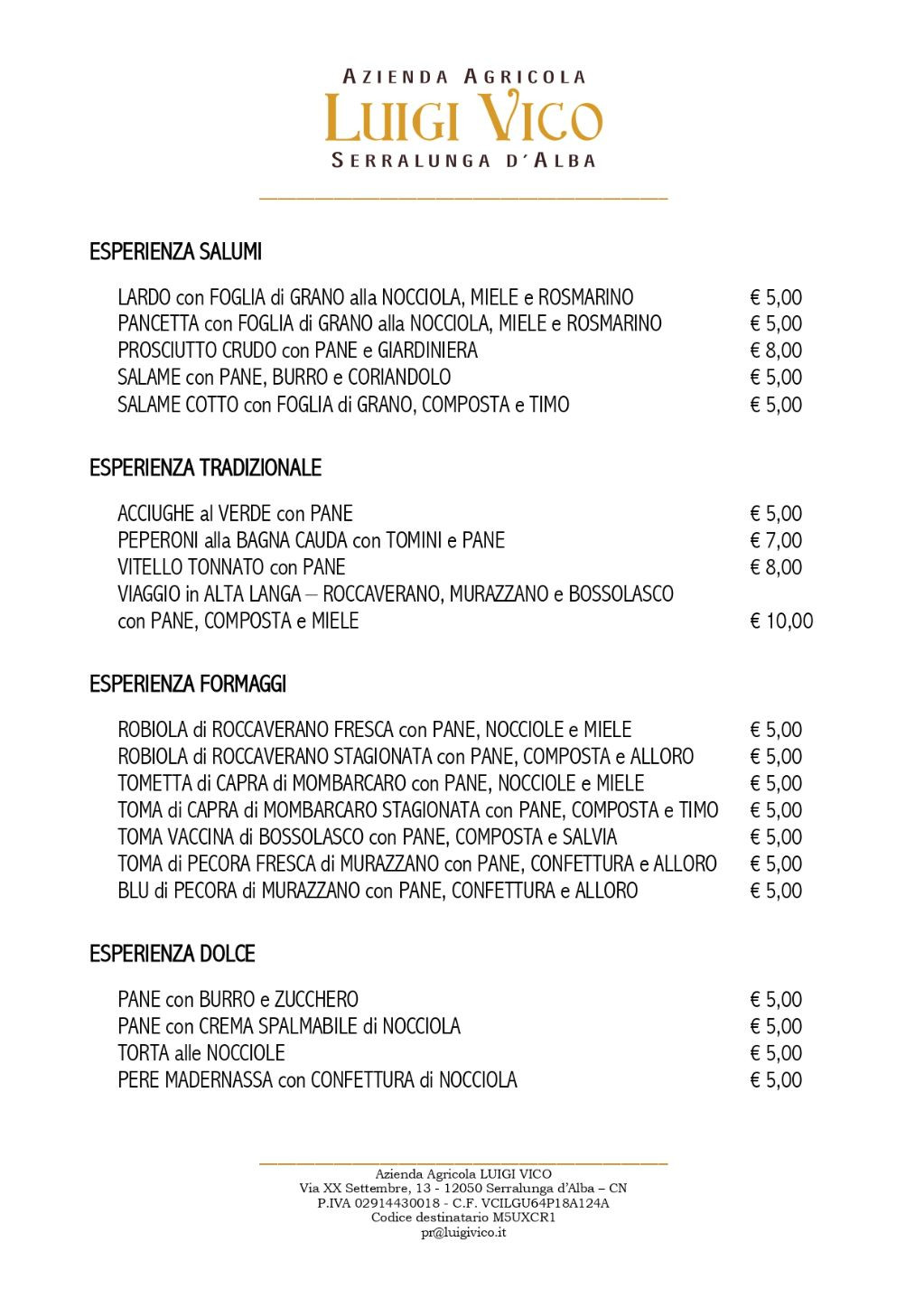 - ESPERIENZA MOSCATO d’ASTI – Moscato secco, Moscato d’Asti, Pesche di Monate al Moscato d’Asti e Vermouth € 25,00