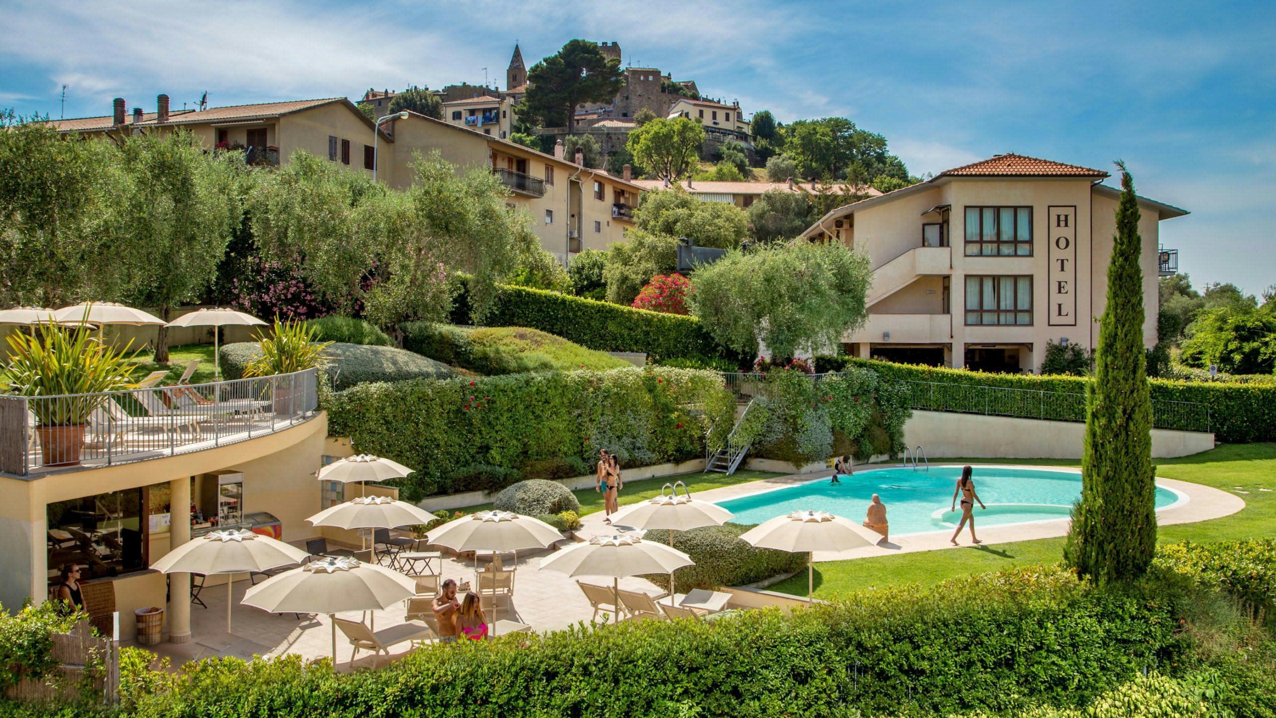 Nell'albergo troverete bar, sala TV, Wi-Fi gratuito, internet point, palestra, sauna, centro estetico e un ampio salone per trascorrere le vostre serate al tavolo verde o al biliardo, per trascorrere una piacevole vacanza in Maremma.