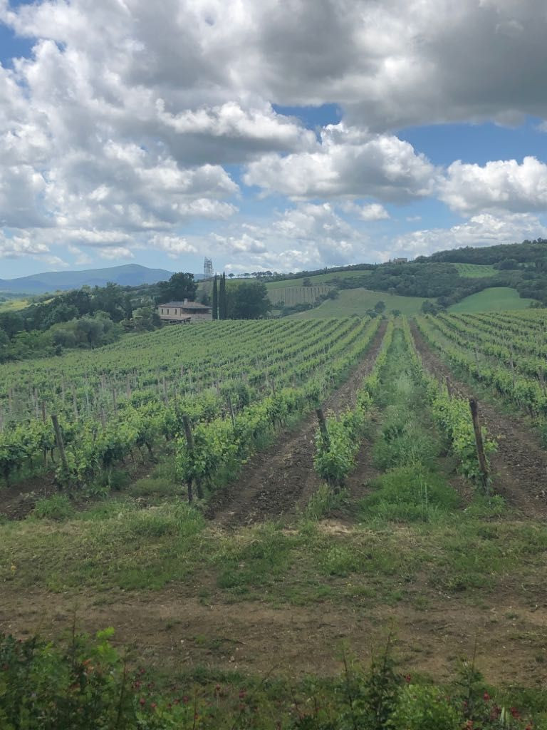 Si procede tra vigneti, uliveti e meravigliosi scorci sulle colline.
