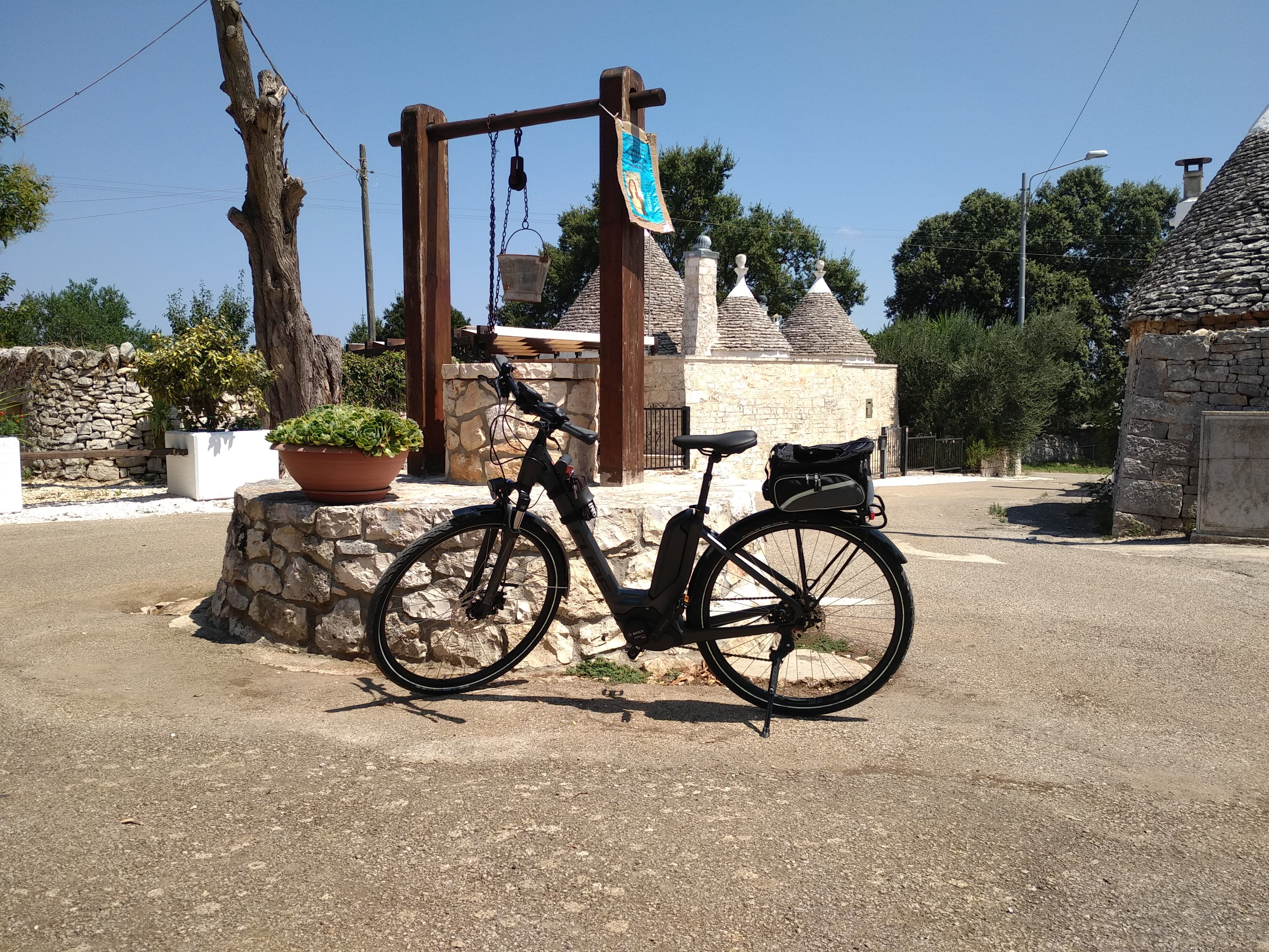 La Valle d'Itria, nella Murgia Sud-Orientale, è una delle aree di maggior attrazione turistica della Puglia. La magia dei trulli e dei muretti a secco la rendono unica ed irripetibile; tra i suoi borghi Cisternino e Locorotondo sono annoverati tra i borghi più belli d'Italia. Il tour si percorre facilmente con l'utilizzo di ebike touring ed è quindi adatto per ciclisti di qualsiasi età. Si parte da Martina Franca, dal punto noleggio, attraverso panoramiche strade asfaltate ma poco trafficate si raggiunge la ciclovia dell'acquedotto, meta preferita dei cicloturisti; la si percorre per un breve tratto e poi si raggiunge Cisternino, attraversando il caratteristico centro storico. Breve sosta su una terrazza panoramica con affaccio sulla Valle d'Itria e ripartenza con destinazione verso il centro storico di  Locorotondo. Si conclude il tour con una sosta in una delle più importanti masserie della zona  per una degustazione di prodotti tipici e rientro al punto noleggio.