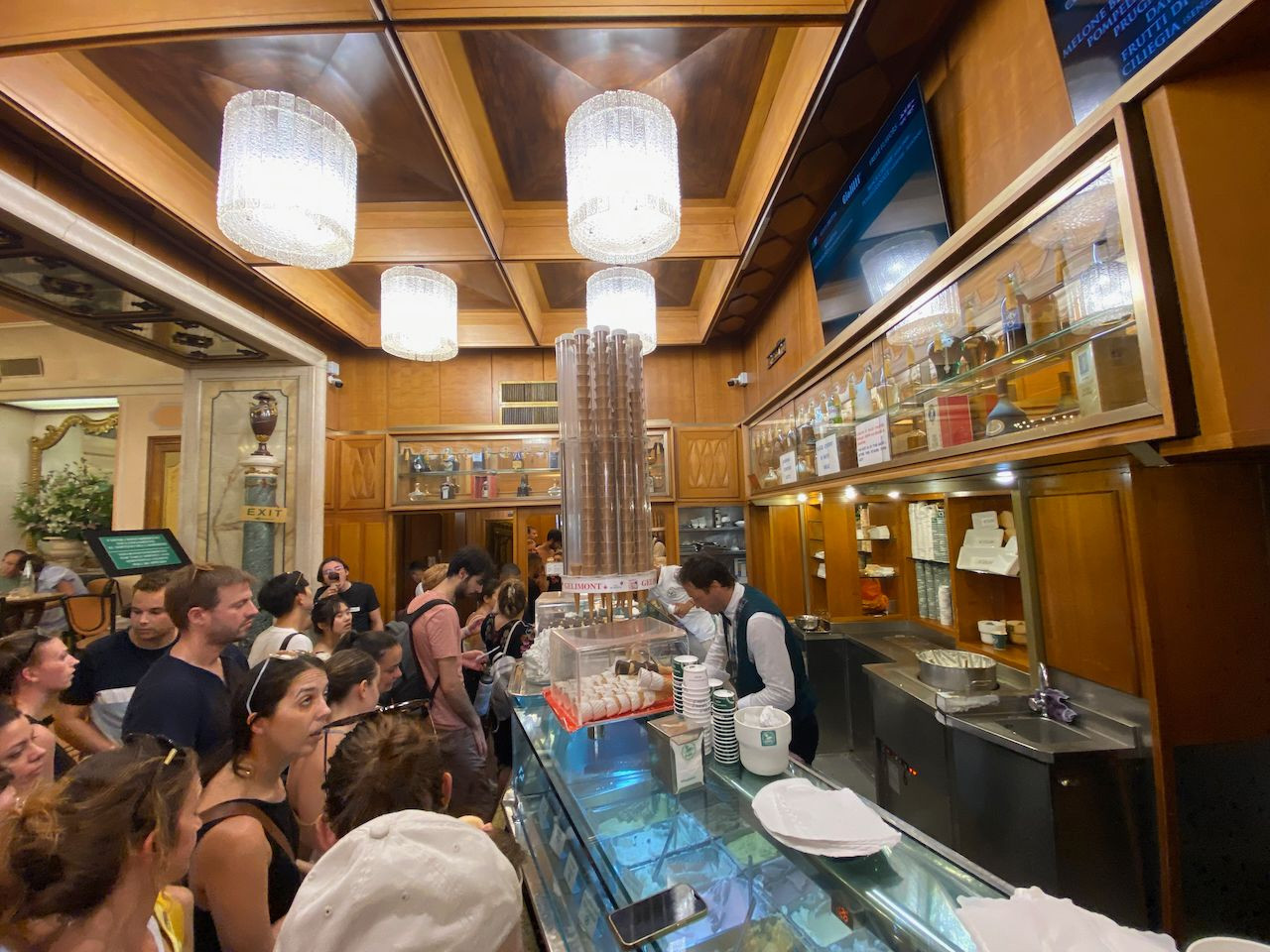 Successivamente, scendendo, si raggiunge Piazza del Popolo e, tra Via del Corso e i suoi numerosi vicoli, si arriva alla rinomata gelateria Giolitti (oppure, con percorsi alternativi, Fassi, Fatamorgana, La Gourmandise). Dopo aver gustato questa prelibatezza, tra pittoreschi rivoli e diverse botteghe, si visita Piazza Navona e Campo dei Fiori, oltrepassando il Tevere per arrivare a Trastevere e il suo affascinante borgo. Una volta concluso il percorso tra viuzze e caratteristiche locande, si ritorna all'Aventino.