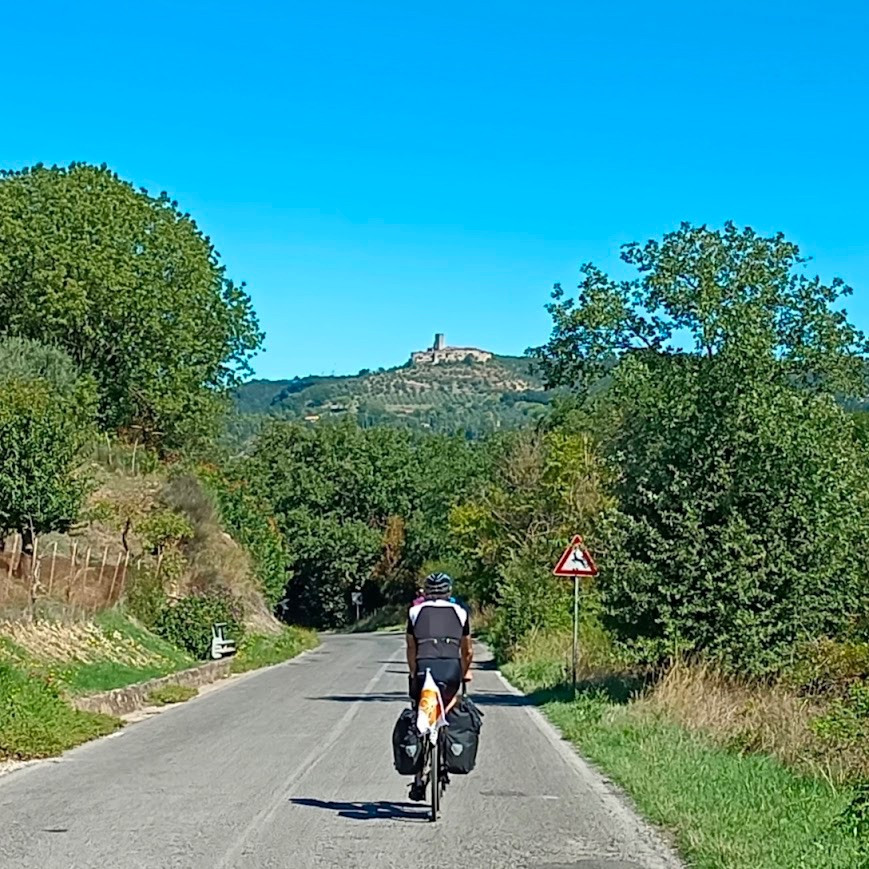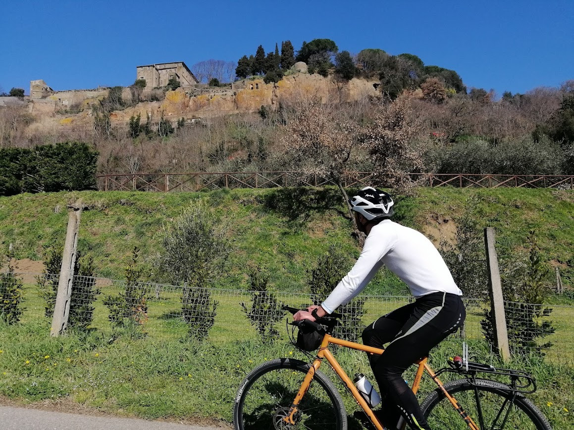 L’undicesima tappa del GTL cambia ancora una volta il paesaggio: ci allontaniamo dall’Appennino per i più bassi Monti Sabini, facendo rotta verso Ovest. Ma le quote inferiori non devono ingannare, dato che le pendenze di questi colli si rivelano spesso più impegnative e dure dei monti veri e proprio, con i loro saliscendi improvvisi e violenti.Da Rieti usciamo per il bel borgo di Contigliano, su strade poco frequentate e solitarie tra ulivi e vigneti. Siamo a pochi passi da Greccio, paese medievale famoso per i suoi presepi, degno senz’altro di una deviazione. Tornanti, salite e discese si susseguono, regalando paesini poggiati sui “poggi”, le alture prescelte per gli insediamenti sin dalle epoche più antiche: Cottanello, Casperia, Cantalupo in Sabina. Solo il finale della tappa e l’arrivo nella valle del Tevere regala un po’ di discesa e di tregua, fino alla stazione ferroviaria di Stimigliano, fine della tappa – e un velodromo pubblico, quello di Forano!