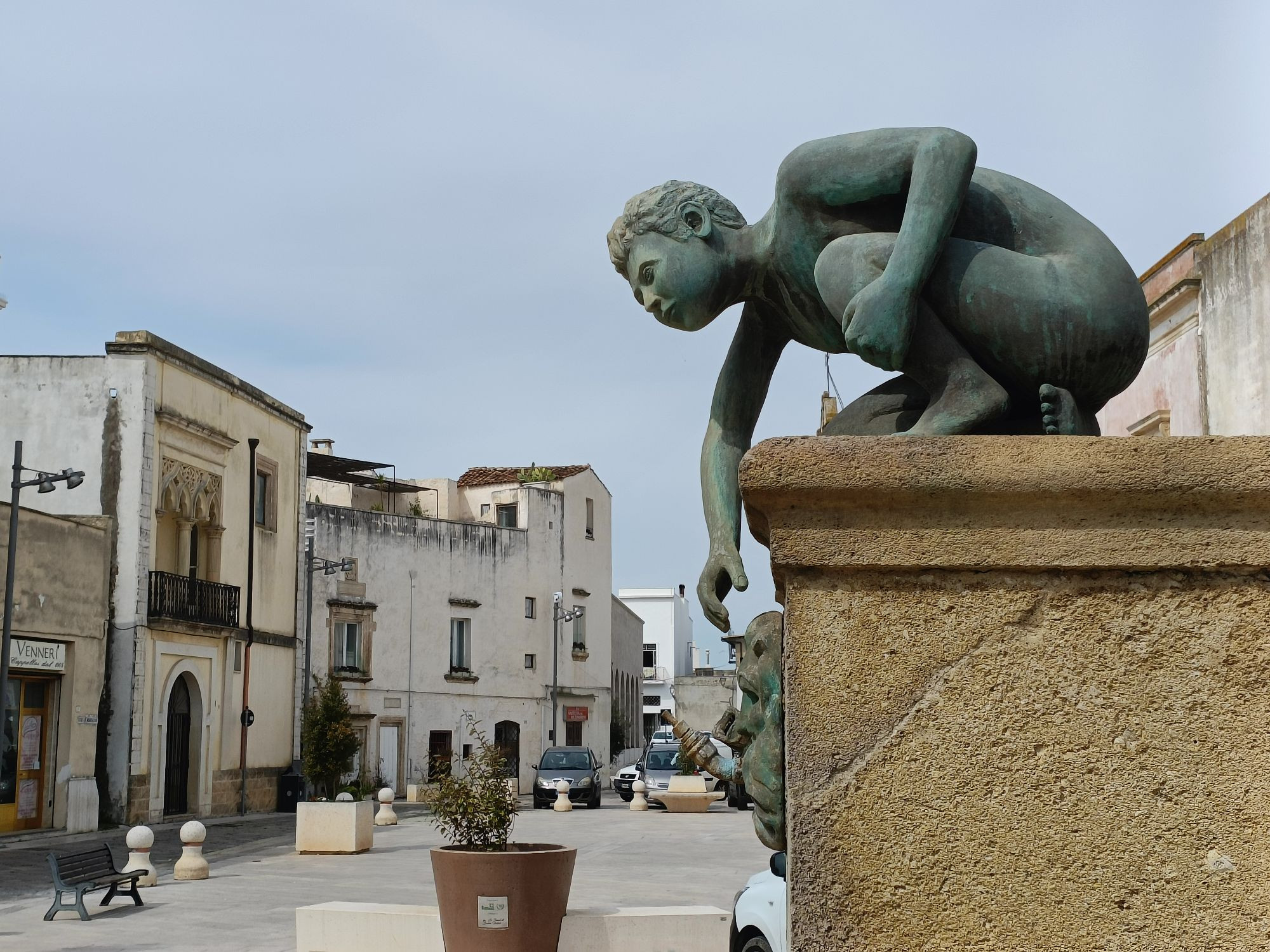In piazza San Sebastiano, la fontana di Romolo e Remo rappresenta il simbolo della città di Racale.