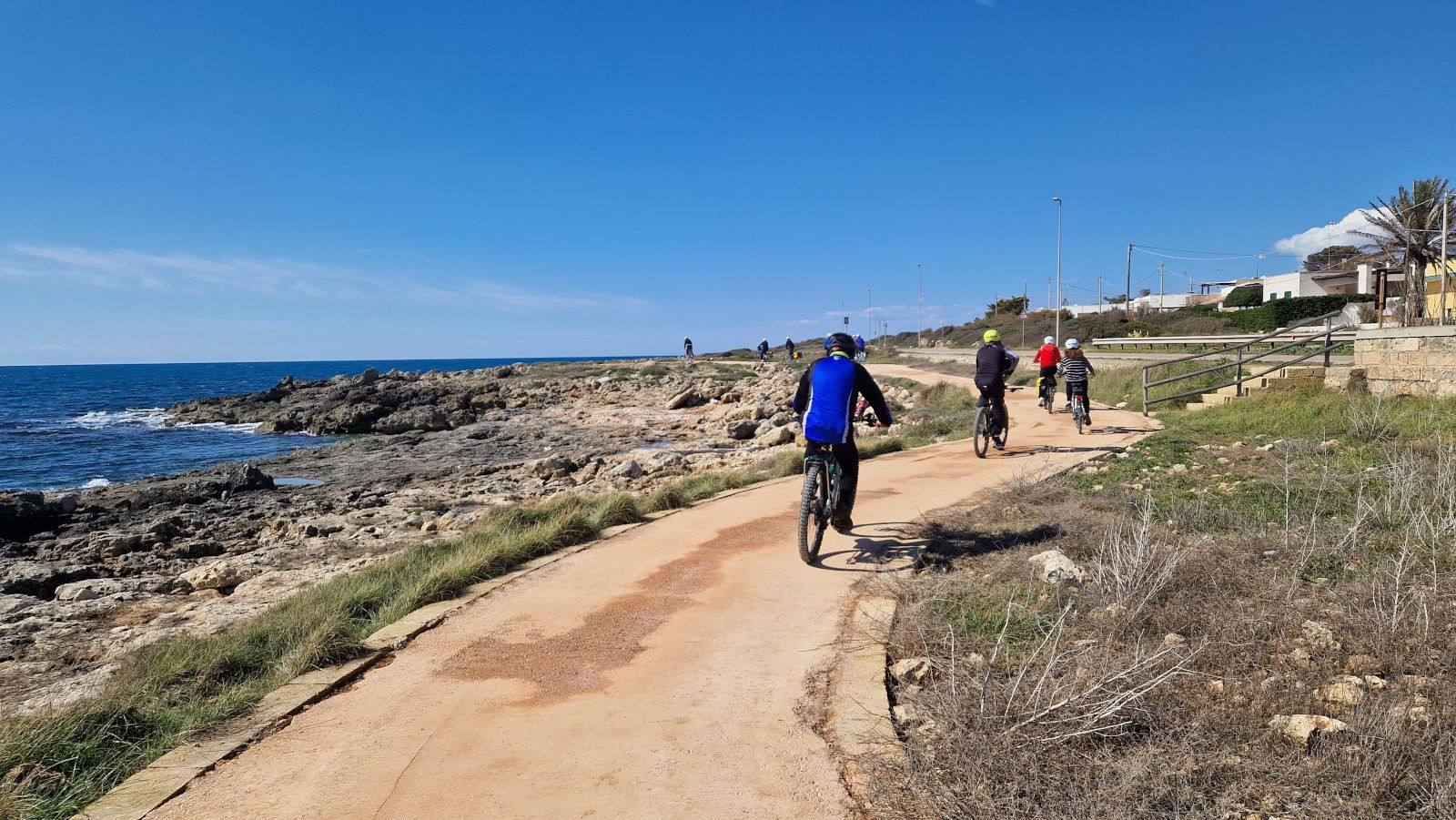 Si pedala in riva al mare sulla deliziosa pista ciclopedonale lungo la bassa scogliera di Capilungo, per arrivare poi nel cuore del Parco regionale di Punta Pizzo, toccare la Chiesa di San Pietro dei Samari e ritornare a pedalare in riva al mare lungo la ciclopedonale della Baia Verde fino a Gallipoli.
