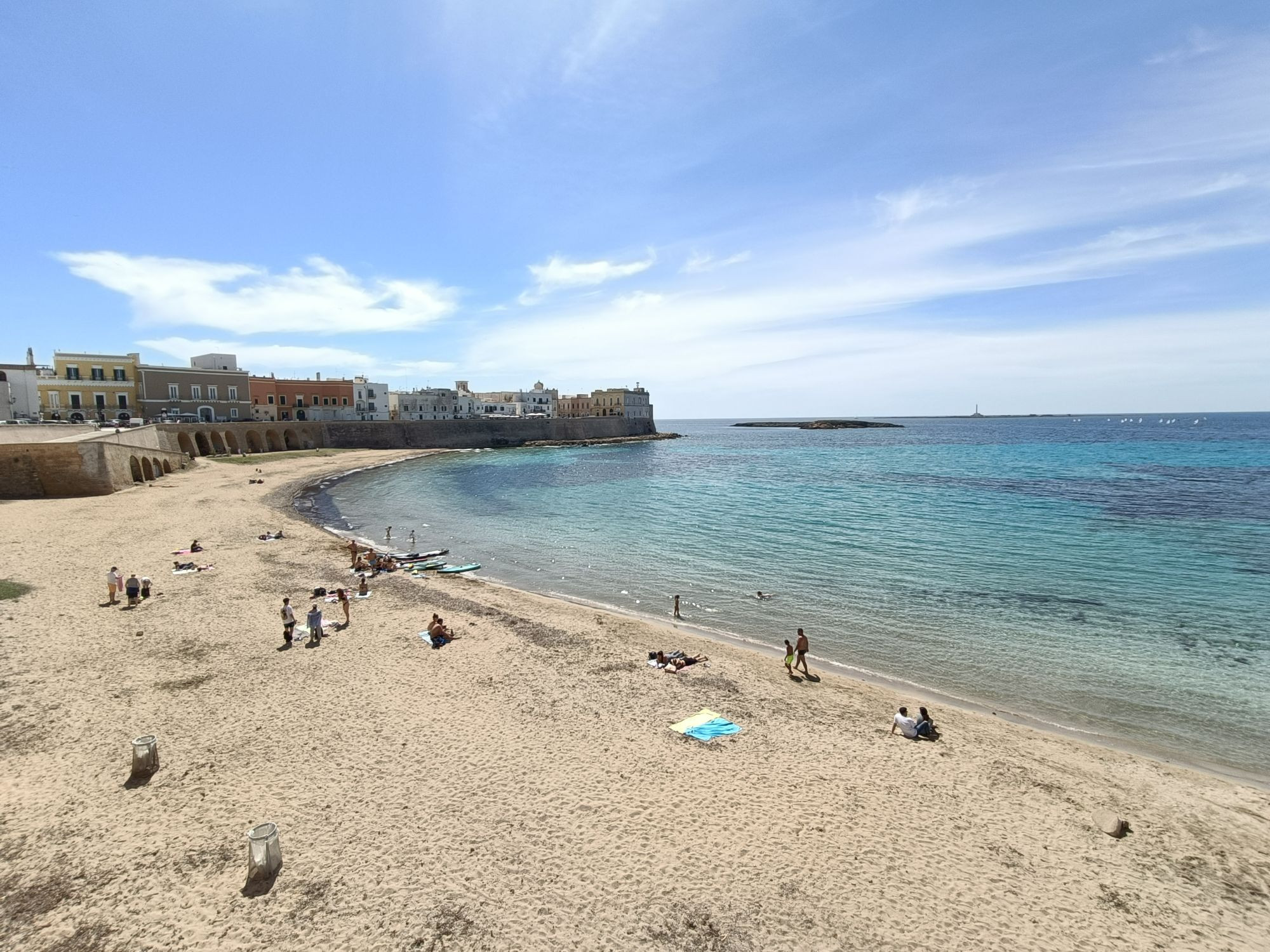 Incastonata come un gioiello tra le mura storiche di Gallipoli, la spiaggia della Purità è un piccolo paradiso nel centro storico della città. Sabbia dorata e acqua cristallina, offre un’atmosfera e una prospettiva uniche: lo sguardo si perde sulle antiche mura della città bella (questo il significato del nome Gallipoli) e all’orizzonte si ferma sulla piccola isola di Sant’Andrea. All’orario del tramonto, la piaggia della Purità si trasforma in uno dei punti più suggestivi per ammirare il sole che gradualmente si inabissa colorando di rosso, giallo e arancione il cielo del Salento. La sua forma e la sua posizione orientata a occidente la trasformano in un teatro naturale rivolto verso la meraviglia del mare Ionio.