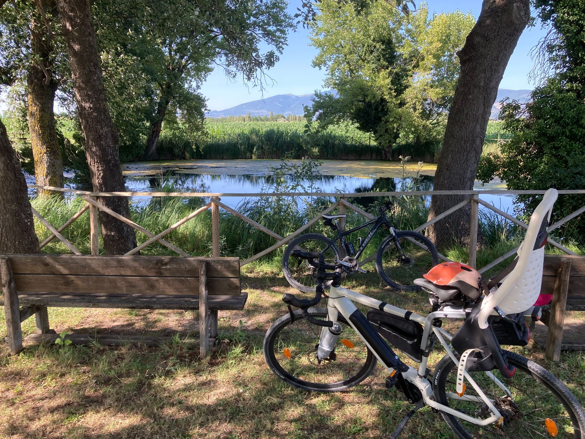 Seguendo poi un suggestivo tratto della ciclovia Assisi-Spoleto si arriva prima nella splendida Bevagna, la città della Gaite ovvero della antica suddivisione della città medievale che ancora oggi riempie gli occhi di bellezza, e poi nei pressi del leggendario Lago Aiso, dove è d'obbligo una sosta rilassante per conoscere l'antica storia e leggenda di Chiarò che, secondo il racconto popolare, giace in fondo al lago, all'ombra di rigogliosi alberi nel verde del parco che lo circonda.