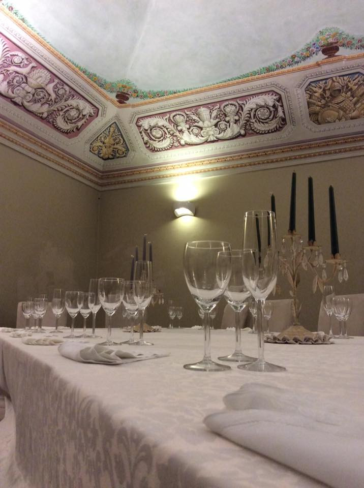 Potrete accomodarvi nell'elegante Sala Principale circondati da affreschi dell'Ottocento che offrono a questa sala una sensazione di quiete e riservatezza e che raccontano un territorio di ricco di eccellenza.
