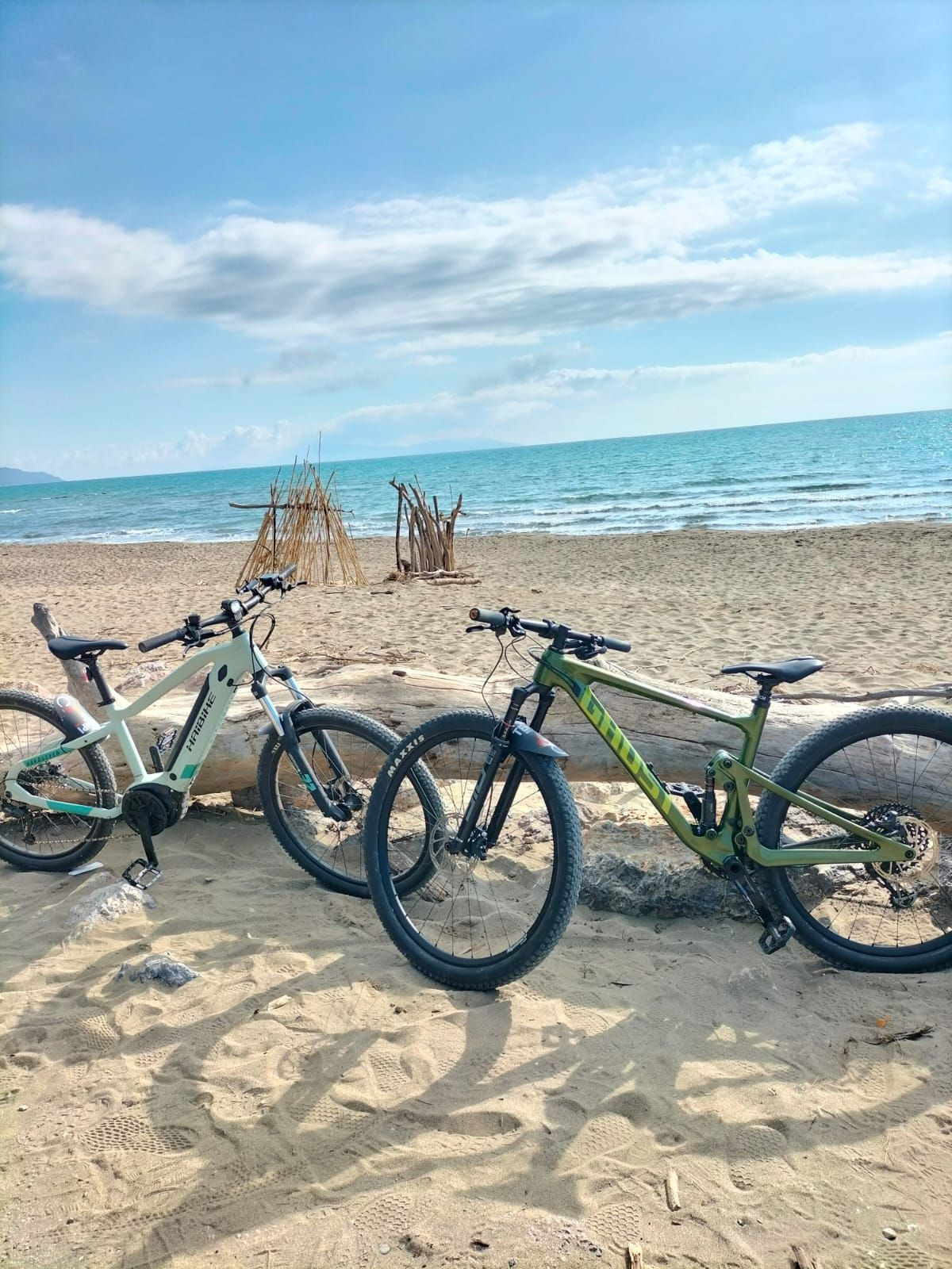 Arrivati alla spiaggia di Marina di Alberese potrete parcheggiare le e-bike lungo i porta bici messi a disposizione e godervi un bel bagno nelle acque cristalline.