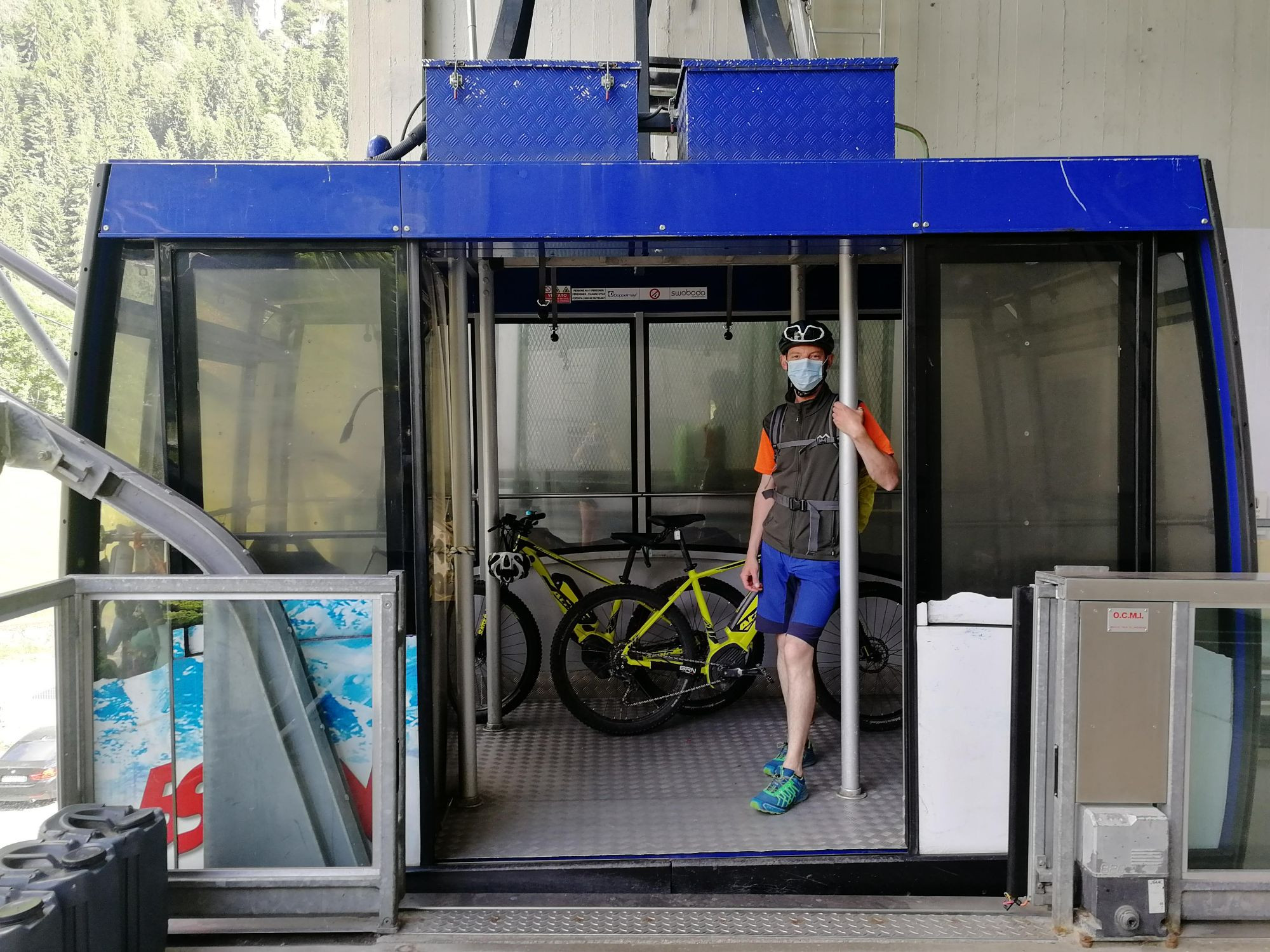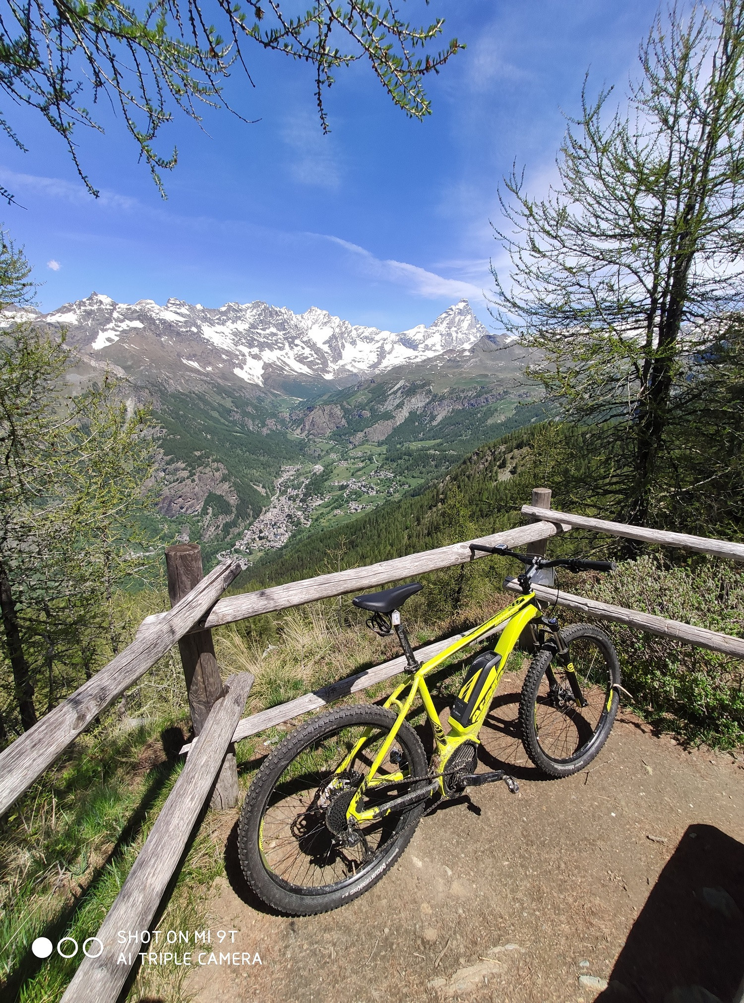 Ok la salita è finita si puo rientrare. Riprendete la strada sterrata che scende e tendendovi sempre sulla destra giungete alla partenza dell'ovetto per Plan Maison. Giunti nel parcheggio delle auto sterrato prendete la destra e risalite verso la strada carrozzabile. In cima alla strada girate a sinistra e al bivio successivo a destra, scendete e poi ancora a destra per giungere alla chiesa di Breuil Cervinia. Potete fare un giretto nella via pedonale dopo di che tornate davanti alla chiesa e seguendo la strada scendete verso la rotatoria, appena dopo la rotatoria, entrate nel parcheggio. Attraversatelo tutto e in fondo tenete la destra, costeggiate la galleria paramassi e arrivate al distributore. Svoltate a destra e prendete la stradina che porta al campo di Golf, dopo circa 50m prendete il sentiero a sinistra con indicazione Perreres/Valtournenche. Proseguite lungo il Marmore, attenzione sentiero tecnico molto frequentato SE NON VE LA SENTITE SCENDETE DALLA BICICLETTA. Giunti in fondo svoltate a sinistra per giungere in un piccolo parcheggio sterrato, tenete la destra e dopo aver oltrepassato la colonia al bivio prendete la destra passando sul ponte. Continuate sullo sterrato fino ad arrivare in una radura con delle casette, prendete il bivio a sinistra e raggiungete Crepin. Da qui vi consigliamo di seguire pedestremente la traccia fino alla funivia di Buisson. Giunti a Buisson prendete la funivia e salite nel comune di Chamois. Potete fermarvi e bere una bella birretta al bar funivia, la parte complicata del tour è finita. Nella piazza in cui vi trovate andate a sinistra verso il municipio e seguite le indicazioni per La Magdeleine. Dopo 4 km circa siete arrivati nuovamente sull'asfalto. Svoltate a destra e scendete fino in paese.