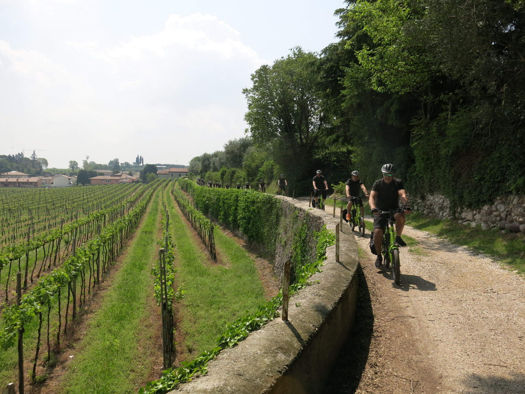 Seguiamo la pista ciclabile che costeggia il Lago di Garda fino ad arrivare a Lazise, un bel borgo medievale circondato da mura e dominato dal castello scaligero. Dopo aver visitato il borgo, torniamo verso l’entroterra e raggiungiamo Peschiera del Garda pedalando su strade di campagna che regalano bellissimi scorci panoramici.