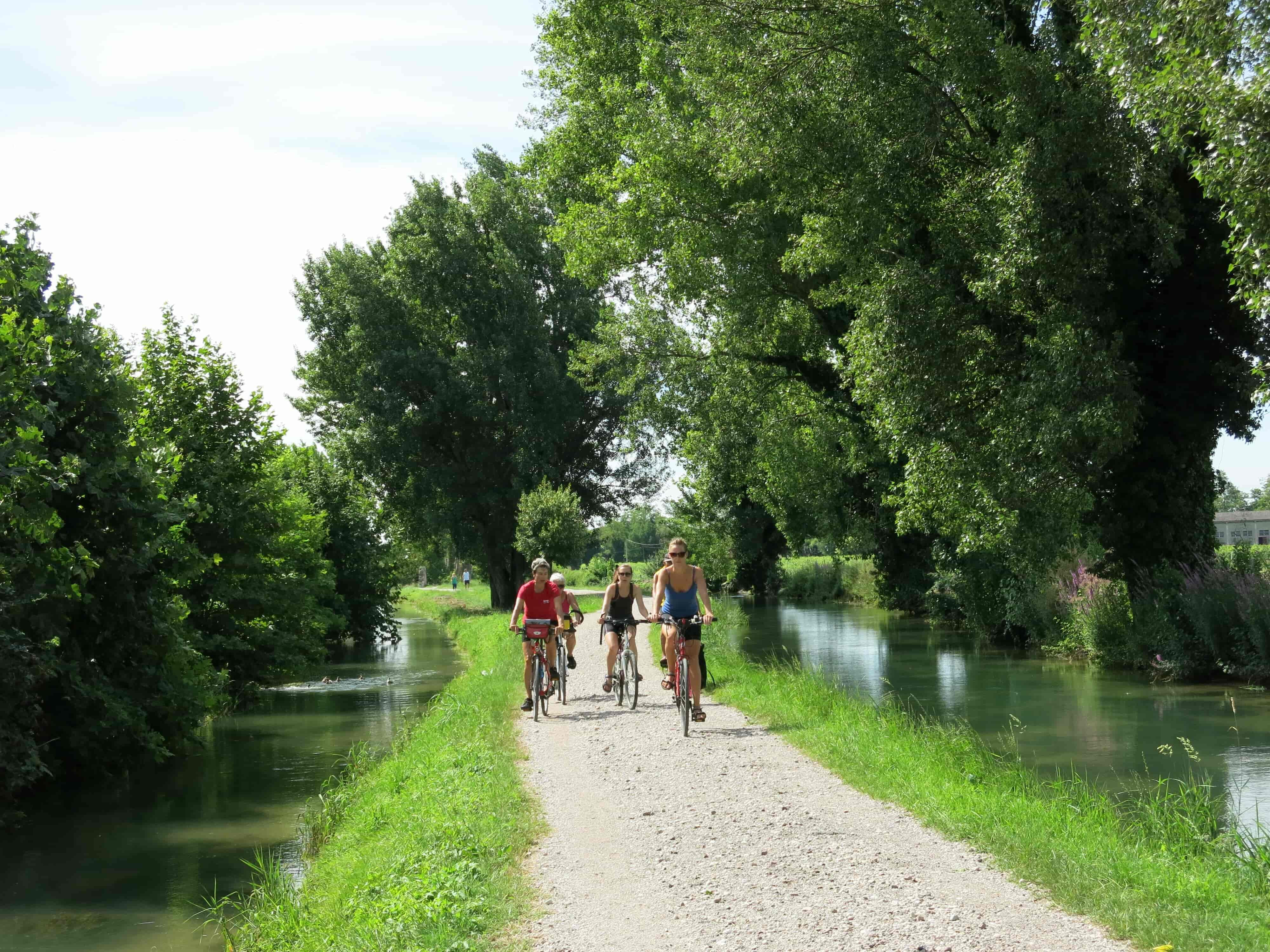 Attraversiamo i quartieri periferici della città ed infine seguiamo il corso del fiume Adige pedalando sulla strada alzaia, che ci riporta in centro storico.