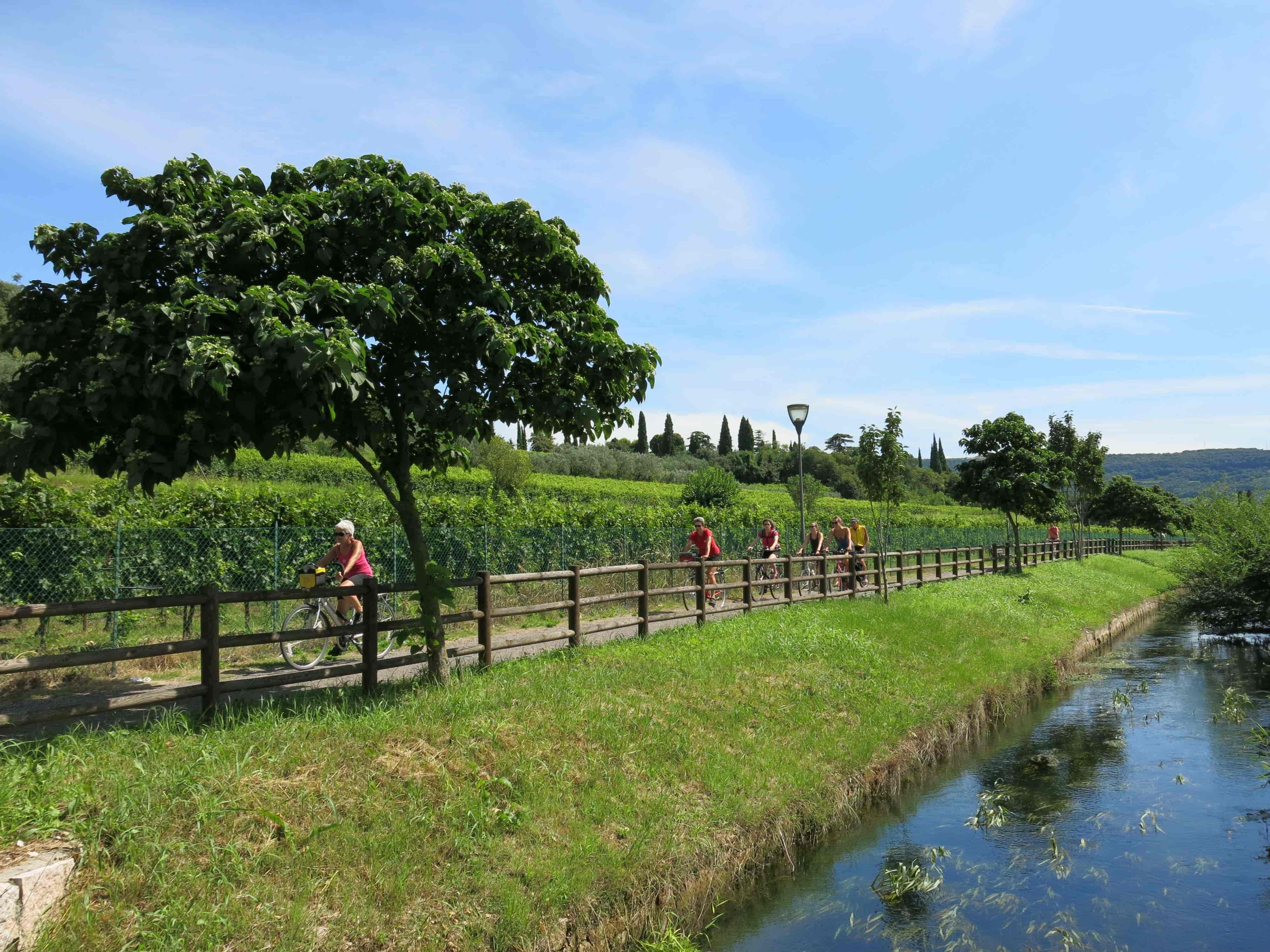 Dopo aver attraversato il centro storico, l'itinerario arriva in Valpantena, la prima valle ad est di Verona, e segue stradine e ciclabili alla base delle colline. Si attraversano ampi campi coltivati a vigneto fino ad arrivare a Montorio, piccolo borgo caratterizzato da numerosi laghetti di risorgiva e ruscelli d'acqua trasparente. Seguiamo uno di questi corsi d'acqua pedalando su una pista ciclabile che regala magnifici scorci sulla campagna circostante.