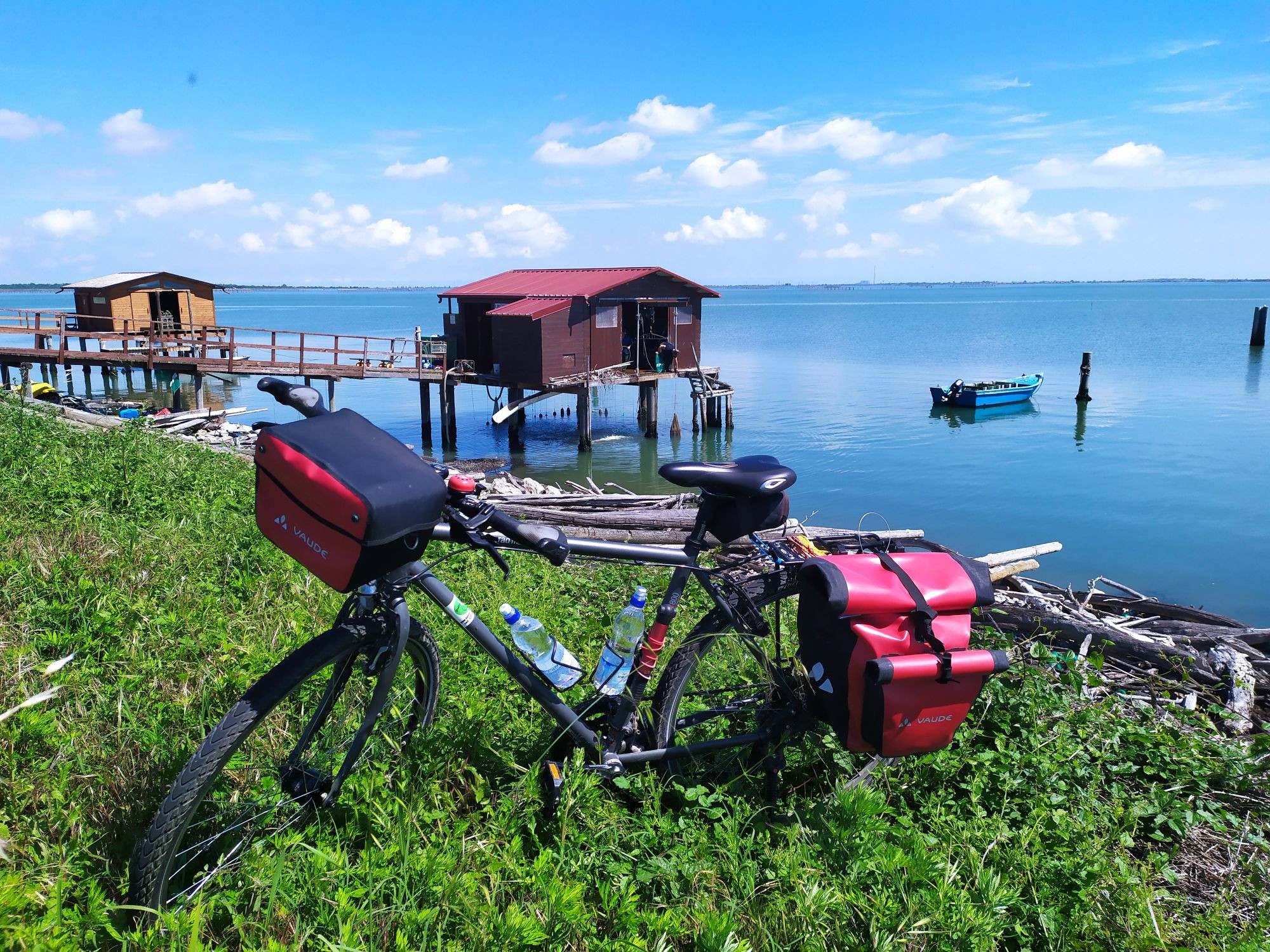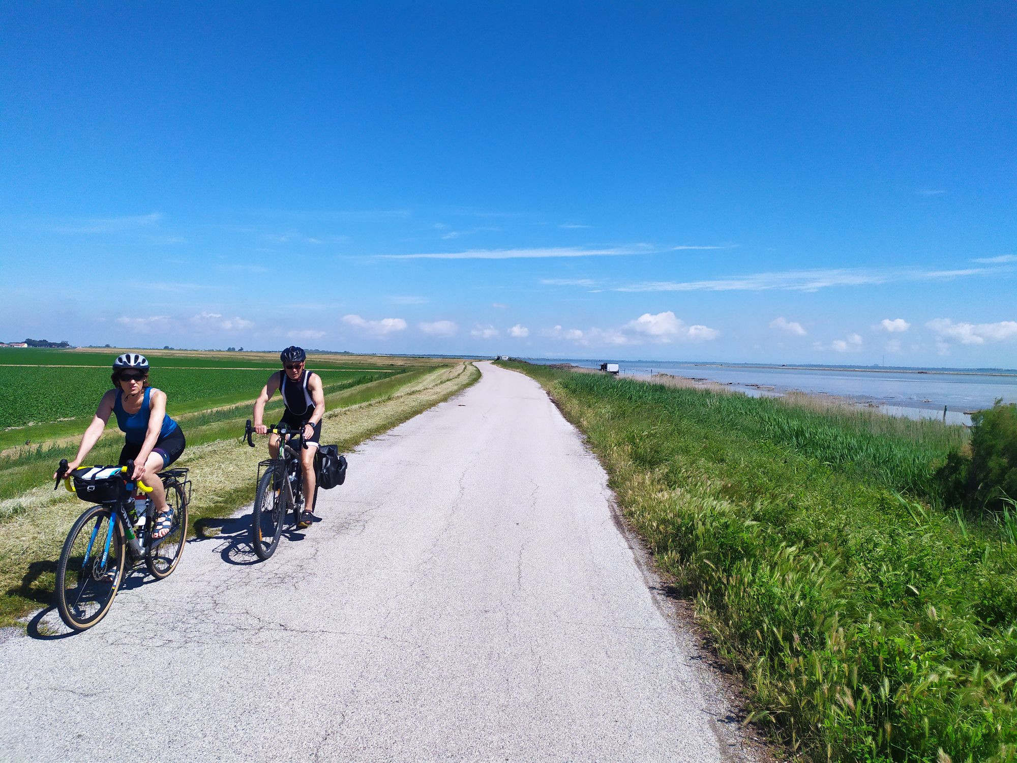Itinerario a anello sull’ isola della Donzella, la più grande del Delta. Si parte dal punto di noleggio BikeSquare Delta del Po e percorrendo l’argine che costeggia il Po di Tolle si arriva a Scardovari, paese di pescatori sede di un grande mercato ittico, segue il villaggio turistico di Barricate con le sue spiagge dalle acque cristalline e la Spiaggia delle Conchiglie. L’itinerario continua sulla strada che costeggia la Sacca degli Scardovari, qui i pescatori svolgono il loro lavoro basato principalmente sull’allevamento dei mitili, dei quali la cozza rappresenta uno dei prodotti di eccellenza. Il percorso percorre tutto il perimetro della sacca fino ad incontrare la foce del Po della Donzella, da qui si risale il corso del fiume fino a Cà Tiepolo dove si torna sul Po di Venezia.