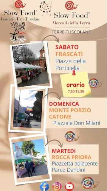 Percorso dei castelli romani unico e orginale per permette la visita dei Mercati della Terra - SLOW FOOD organizzati dalla Condotta di Frascati e delle Terre Tuscolane in questi Giorni ( Frascati sabato- Monteporzio domenica -Rocca Priora martedi solo mattina )