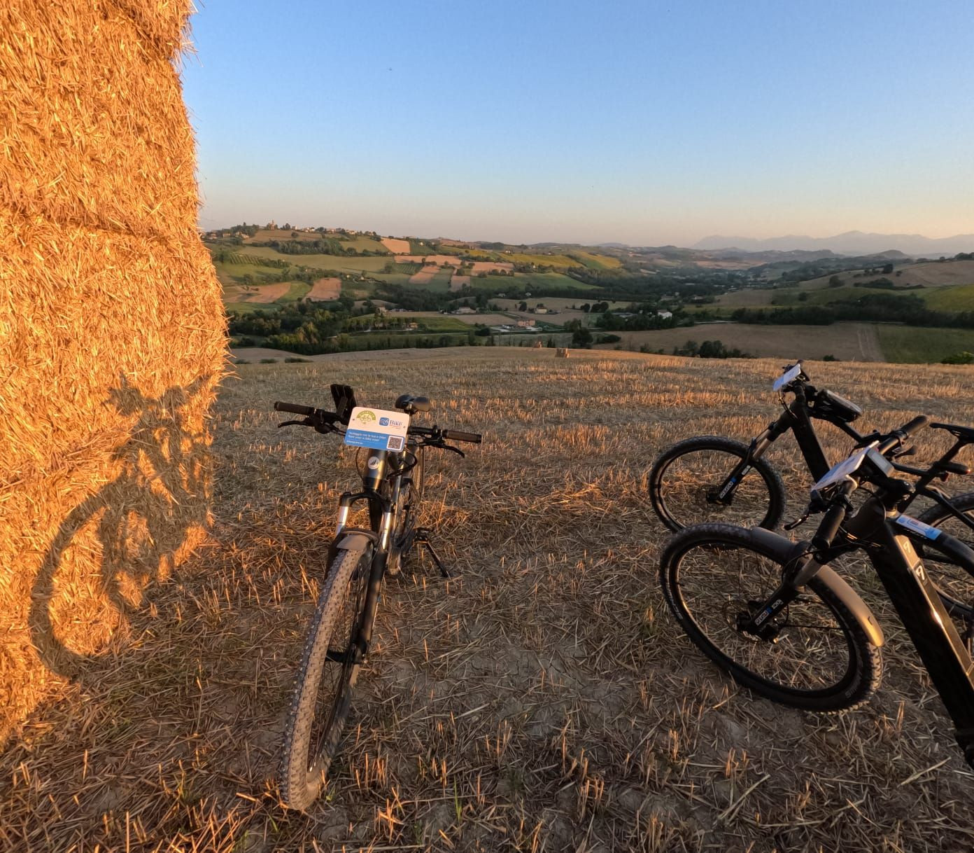 Dalla piazzetta del borgo di Petriolo, dove la vista spazia dalle vette dei Sibillini e del Gran Sasso d’Italia fino al mare Adriatico e lo sguardo si perde su una miriade di paesini arroccati sui colli, si parte con l’e-bike per immergersi nell’esperienza delle dolci colline marchigiane, nel saliscendi fra uliveti, vigne e colori che le stagioni sanno regalare da queste parti.