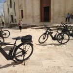 Un tour facile e adatto anche a chi non è allenato, attraverso il quale si potrà scoprire l'incantevole campagna della Murgia. Si parte dal punto noleggio ebike di Martina Franca in direzione Alberobello e pedalando attraverso la campagna collinare della Murgia Sud Orientale si possono apprezzare splendidi panorami caratterizzati dalla presenza dei trulli e dei muretti a secco ormai patrimonio dell'Unesco. In prossimità di Alberobello una breve sosta presso Bosco Selva e dopo poche centinaia di metri ci si ritrova nella principale piazza del centro monumentale di Alberobello. Si riprende a pedalare e sempre attraversando le tipiche strade di campagna si raggiunge il borgo di Locorotondo (nominato tra i borghi più belli d'Italia), per poi giungere al punto noleggio di Martina Franca.