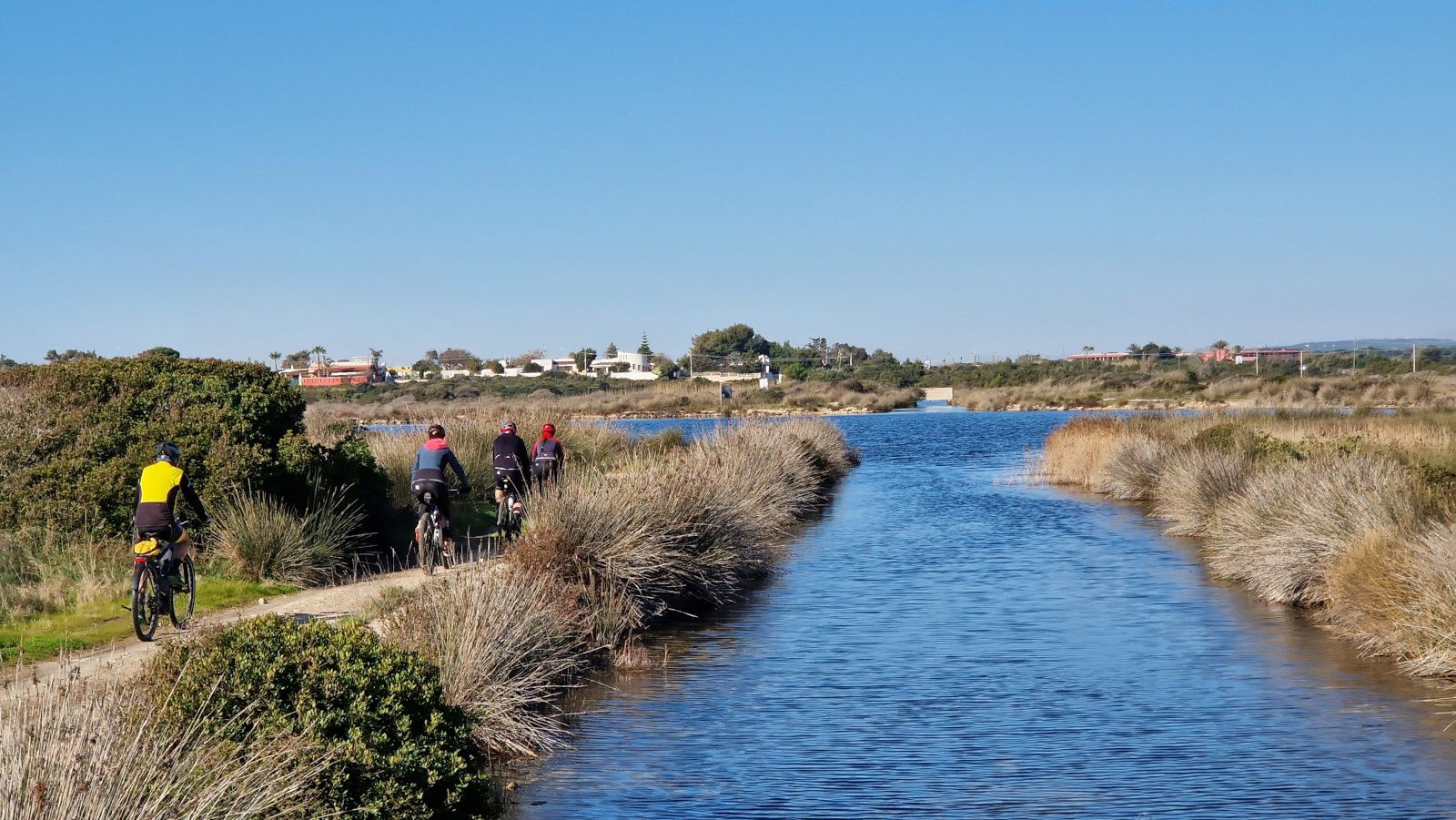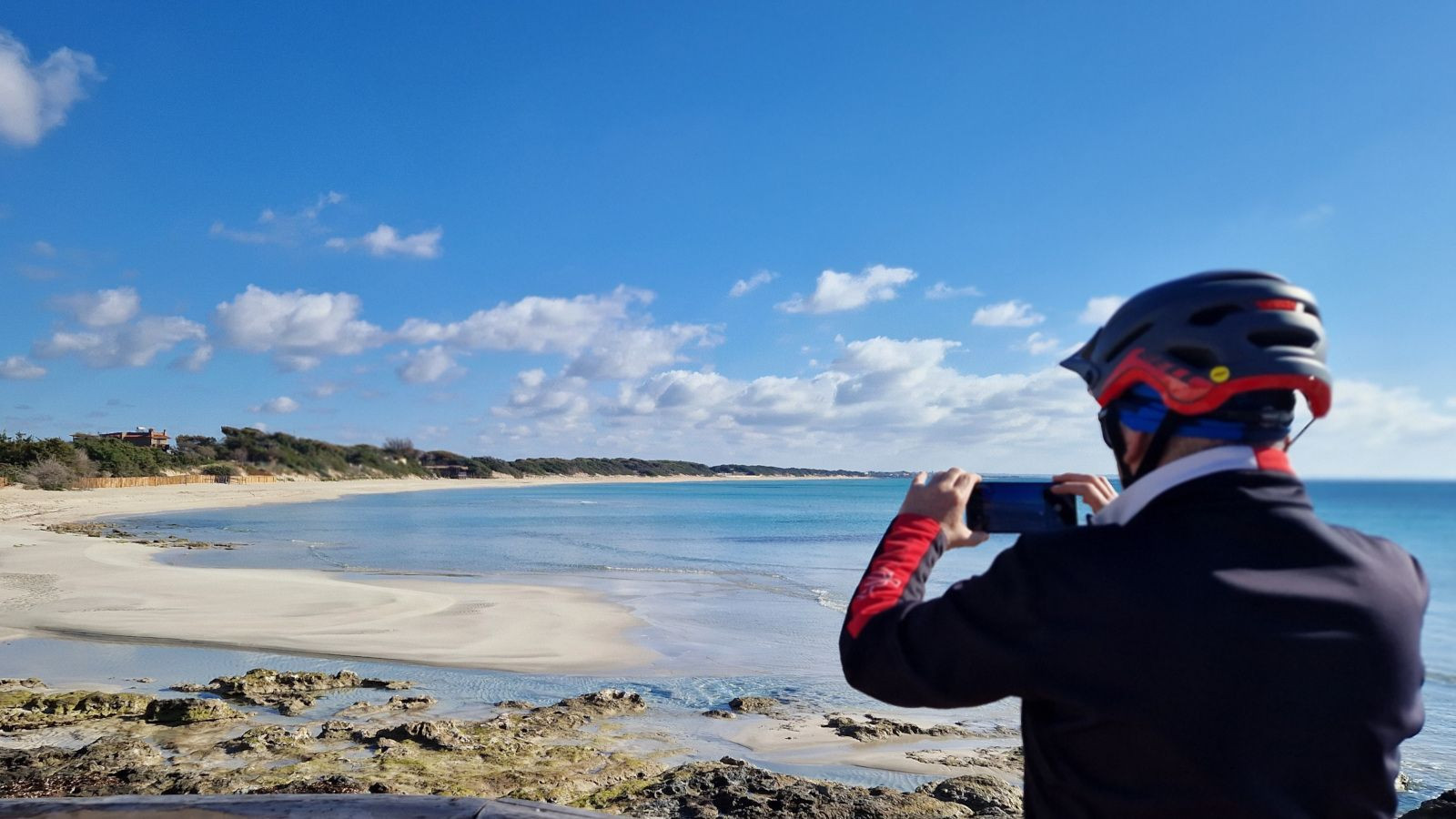Dopo un affaccio su una fantastica spunnulata (una risorgiva), si pedala fra il bosco d'Arneo e la costa con i suoi gioielli naturalistici: i sentieri nella profumata macchia della Palude del Conte, i fenicotteri rosa in volo sullo specchio lacustre di Salina dei Monaci, l'acqua gelida e cristallina della foce del fiume Chidro.