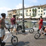 Seguiamo la pista ciclabile che costeggia il Lago di Garda fino ad arrivare a Lazise, un bel borgo medievale circondato da mura e dominato dal castello scaligero. Dopo aver visitato il borgo, torniamo verso l’entroterra e raggiungiamo Peschiera del Garda pedalando su strade di campagna che regalano bellissimi scorci panoramici.