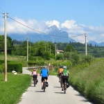 Usciamo dal centro di Verona e seguiamo una pista ciclabile che ci avvicina alle colline moreniche che circondano il lago, con bei panorami sulla Valpolicella. Pedaliamo su strade di campagna, tra uliveti e vigneti su strade leggermente ondulate, fino ad arrivare finalmente a Bardolino: non c’è posto migliore per una pausa gelato!